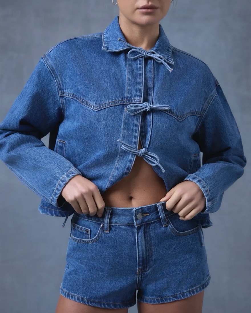 Cute and fun denim jacket. Set with shorts is also available for rent.