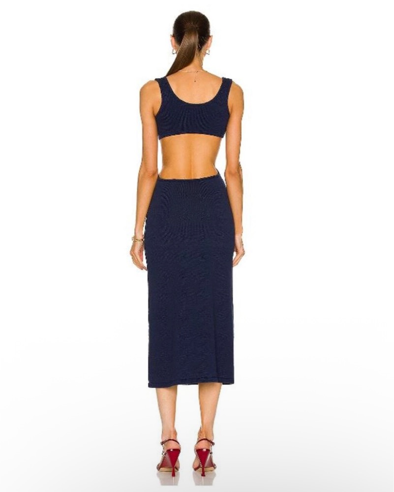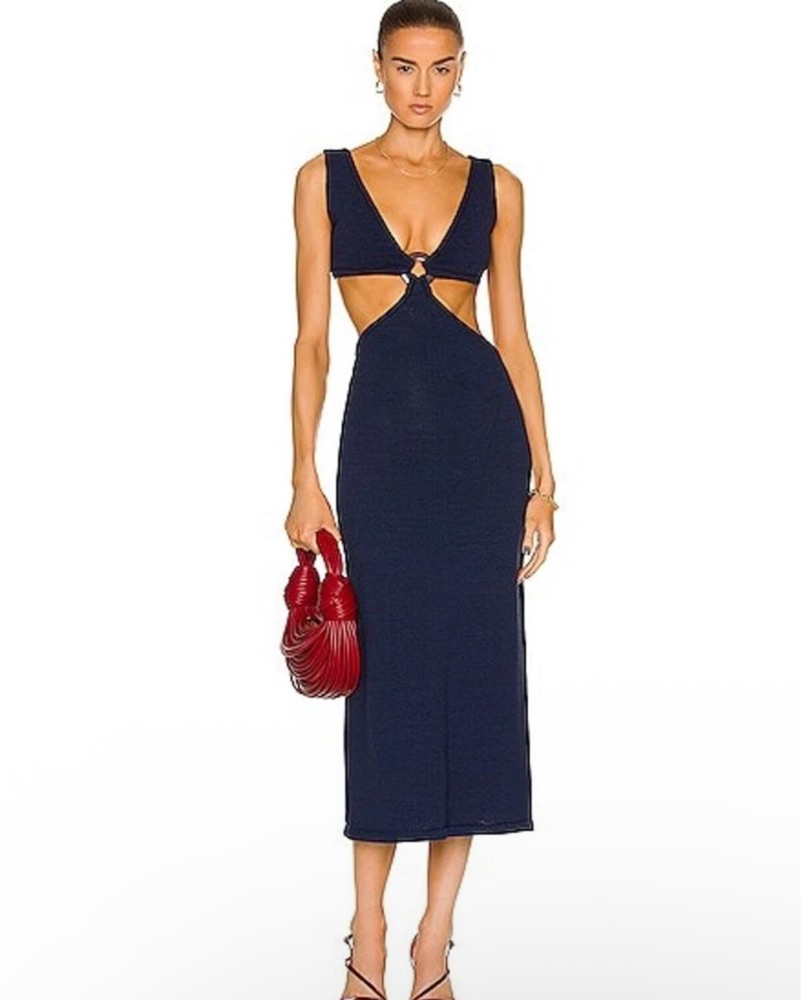 Cult Gaia Bank Midi Cut Out Dress Navy