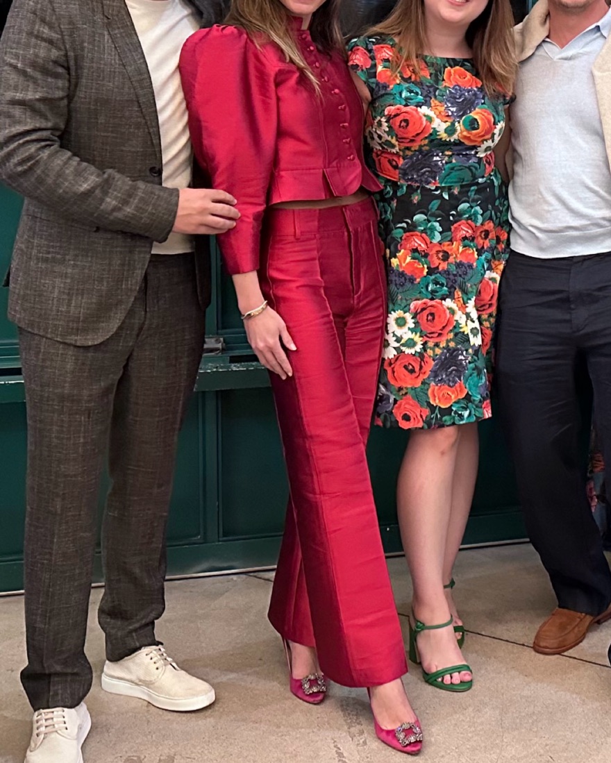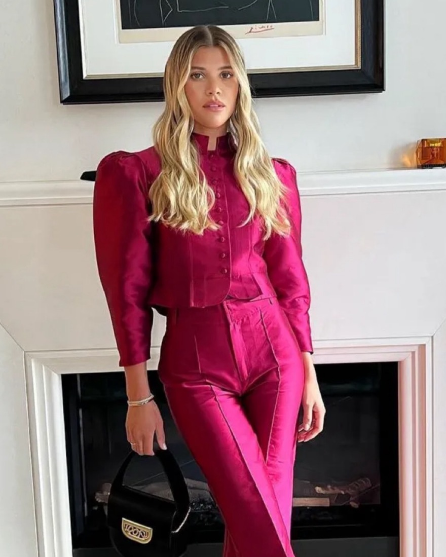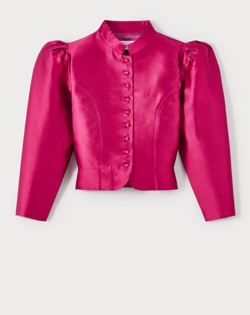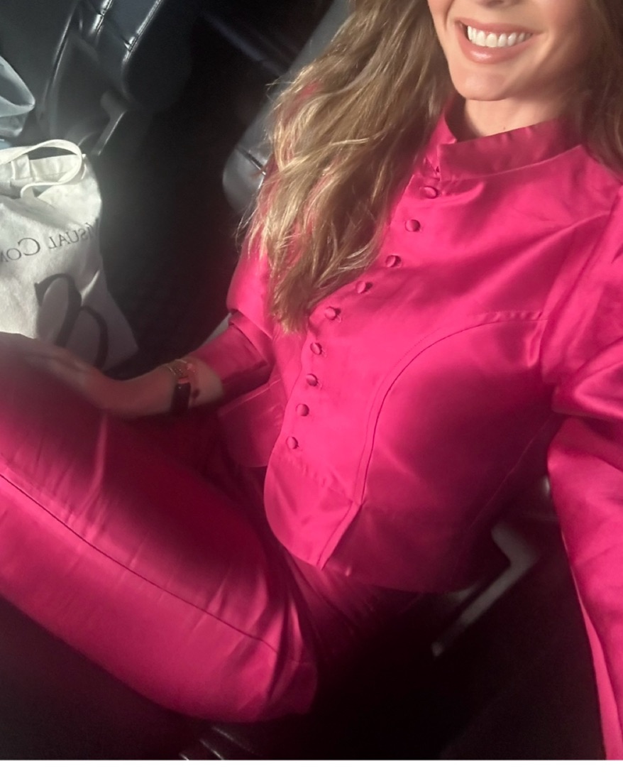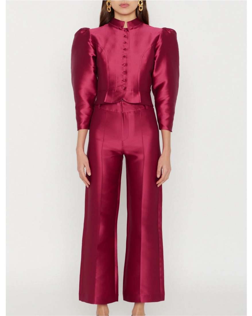 Autre Marque Pink puff shoulder satin top and trousers set- fuchsia, worn twice.