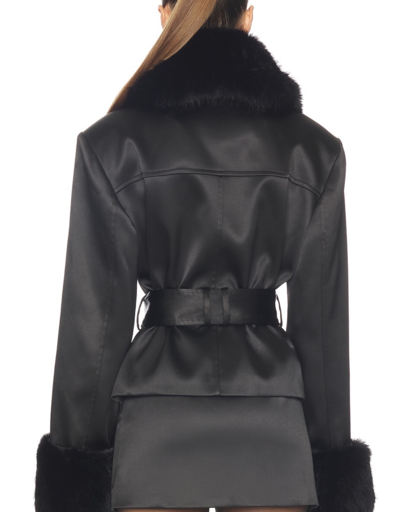 Elegant Black Fur-Trimmed Women's Jacket. New with tags, never worn!