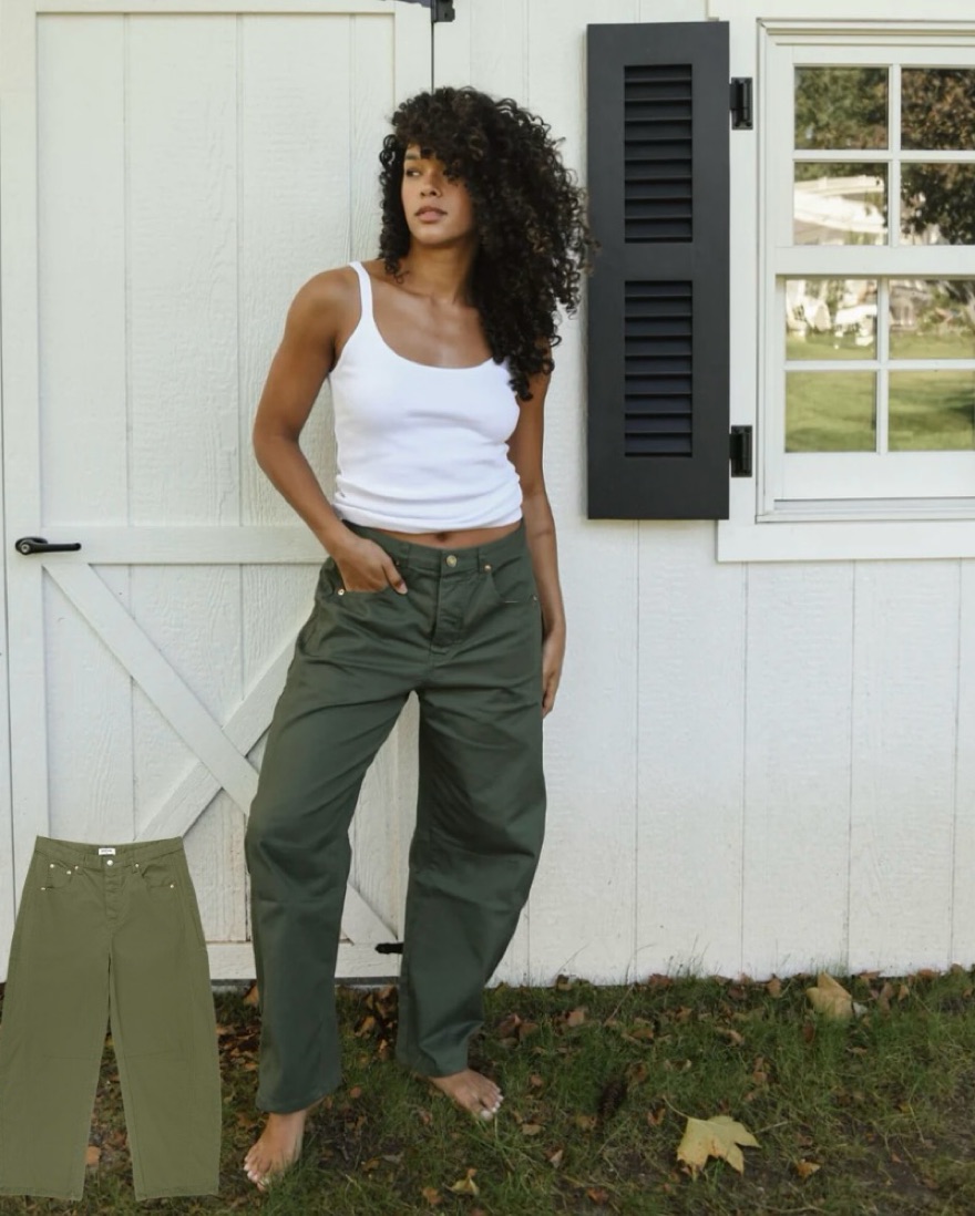 Park army green cotton twill horseshoe pant - I am usually a 27 but got these in a 26, if you’re a 26 these would be a bit of a baggier fit - very comfy