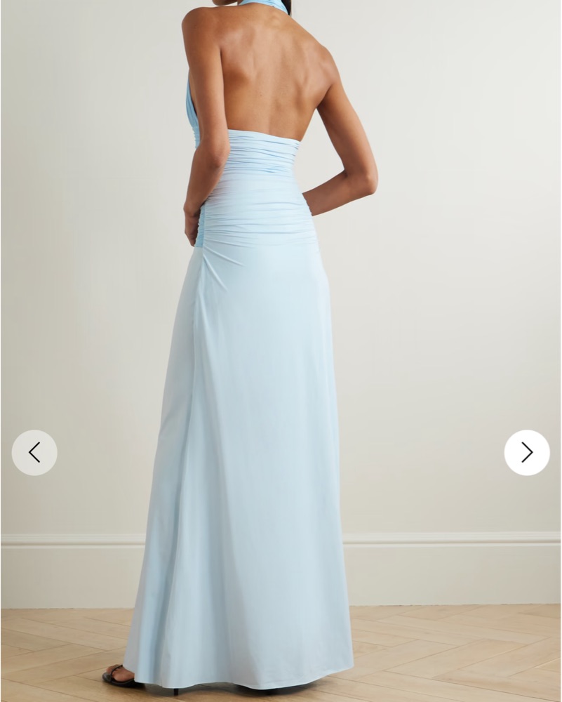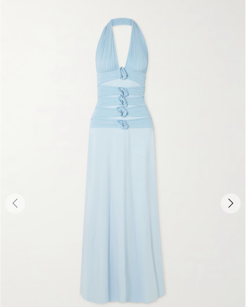 Stunning blue dress, perfect for weddings, beautiful blue color. Worn once then immediately dry cleaned. One size fits most!! Villadiego appliquéd stretch-jersey halterneck maxi dress