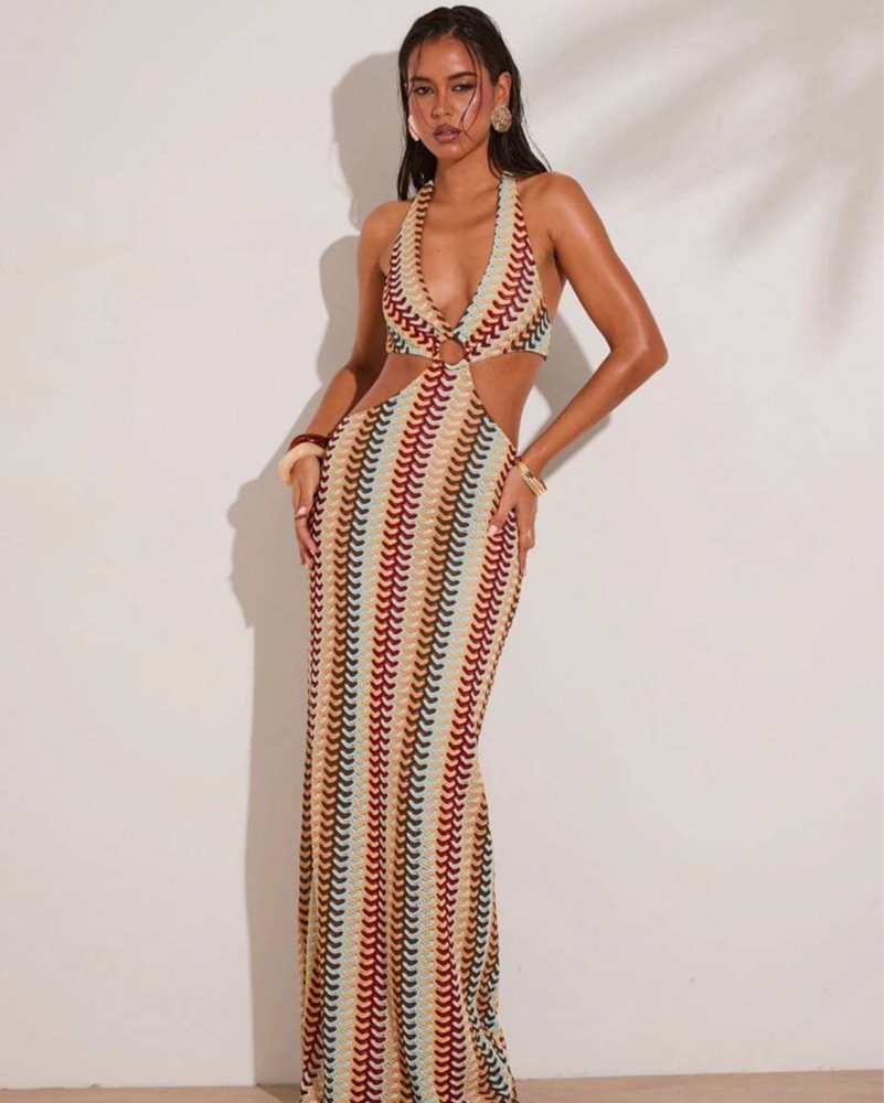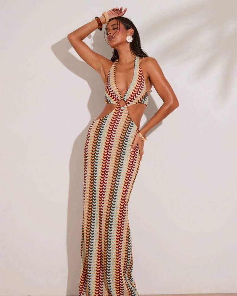 Missoni Inspired Cut Out Maxi Dress