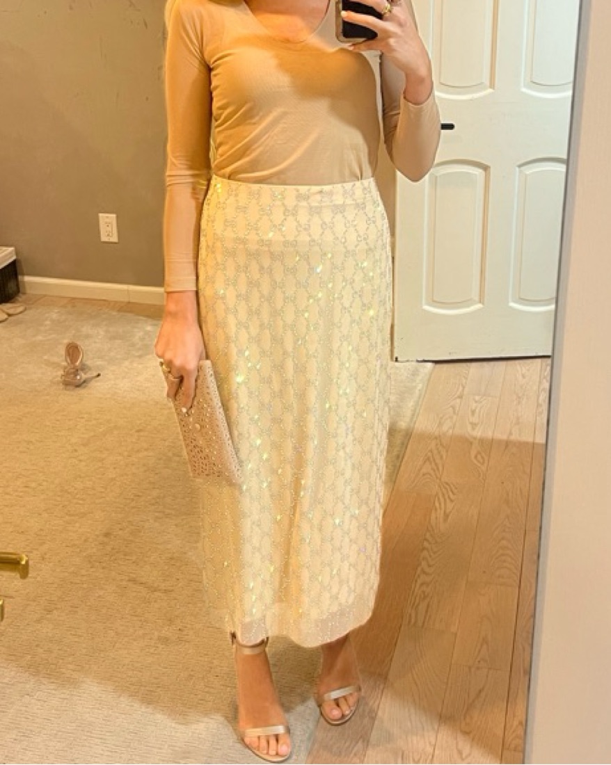 Size small Gucci midi rhinestone nude skirt. Worn once