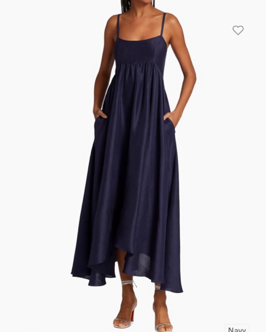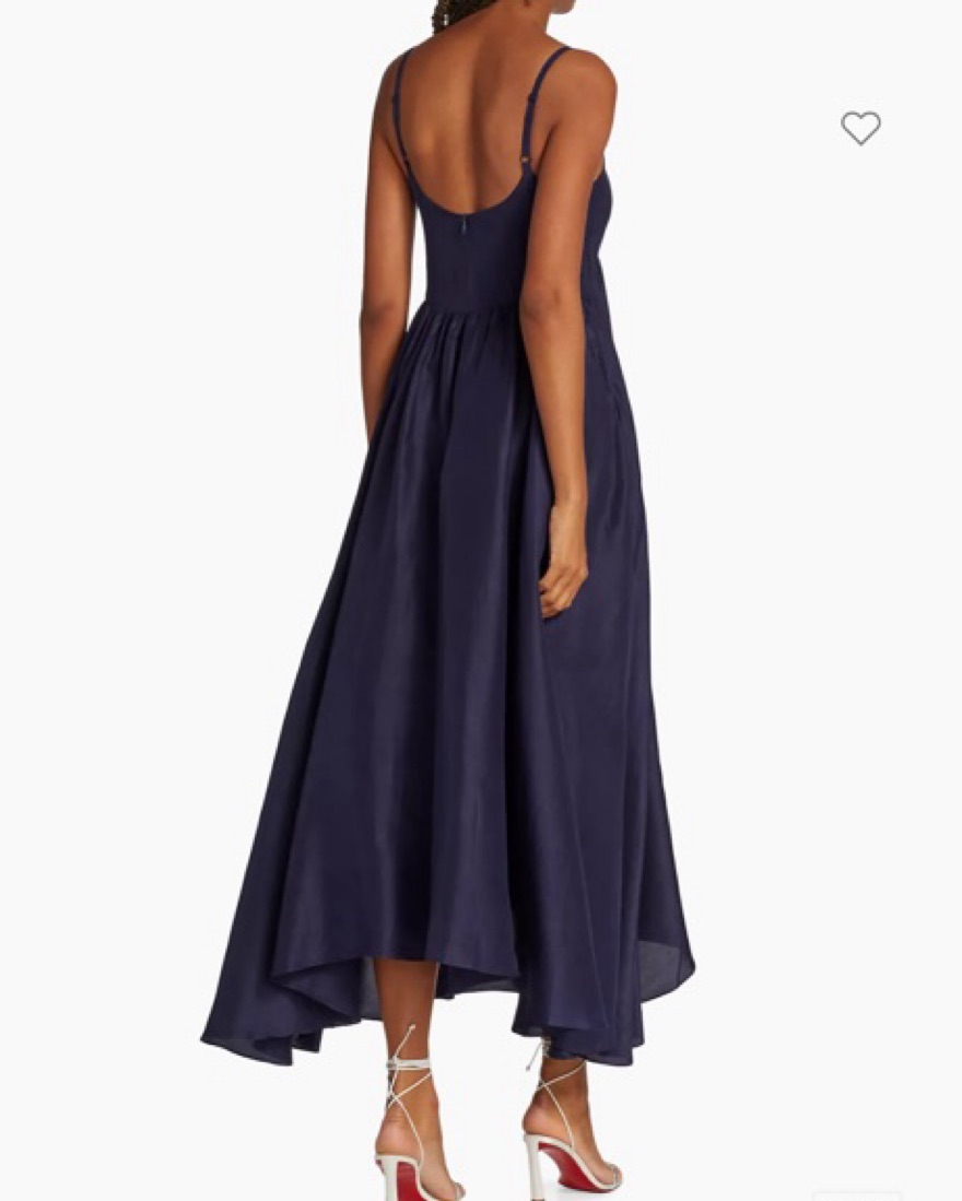 Crafted of radiant silk, Azeeza’s Rachel dress is designed with an empire waist and a full circle skirt.