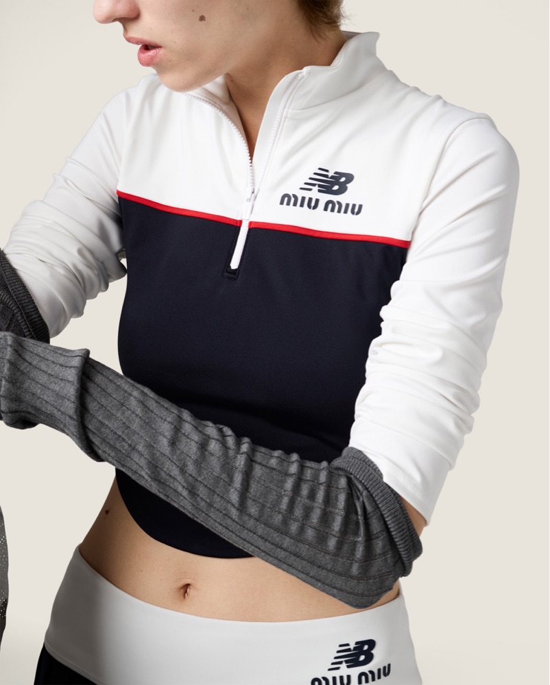 Both size XS - skirt runs a little large. The New Balance X Miu Miu collection is inspired by sportswear, combining style and performance. References to the tennis world define the allure of this pleated miniskirt made of stretch technical jersey, a breathable, water-resistant fabric.