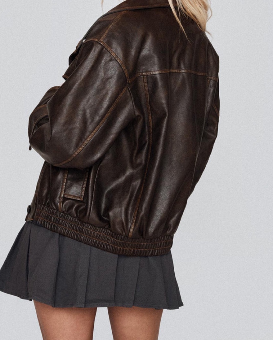Faux Washed Brown Leather Jacket