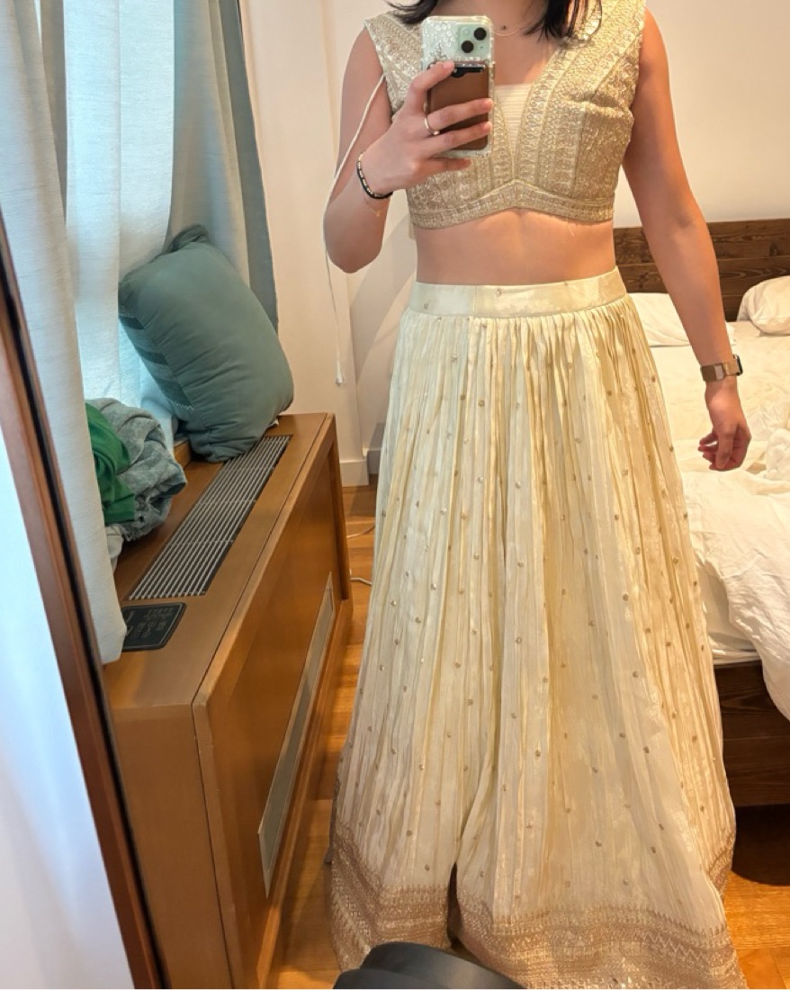 Offwhite / Yellow lehenga by Indian lehenga - Pickle