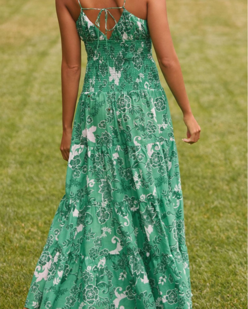 Anthropologie Green Smocked Maxi Dress