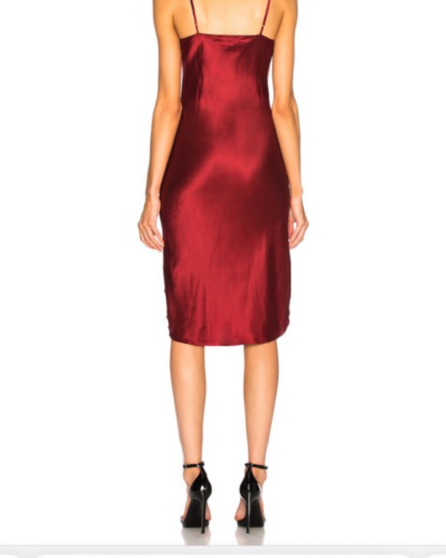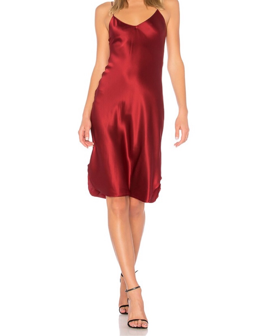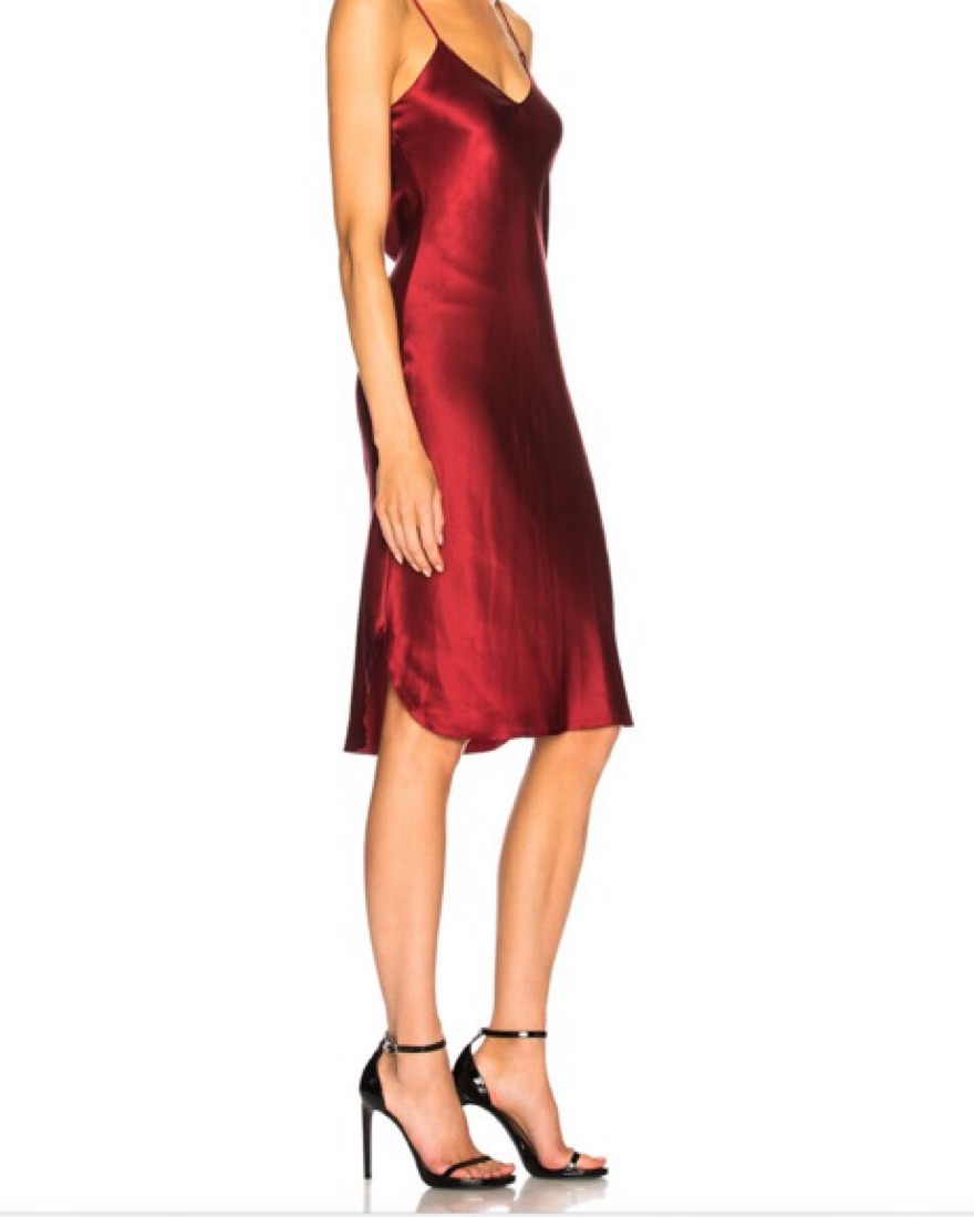 100% silk Made in USA Dry clean only Unlined Adjustable shoulder straps Lightweight charmeuse fabric