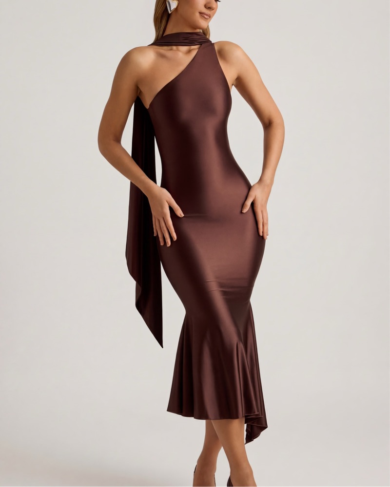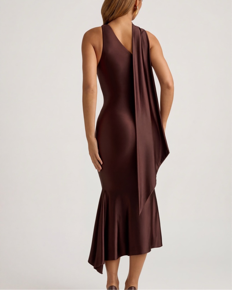 Oh Polly Brown Scarf Midi Dress