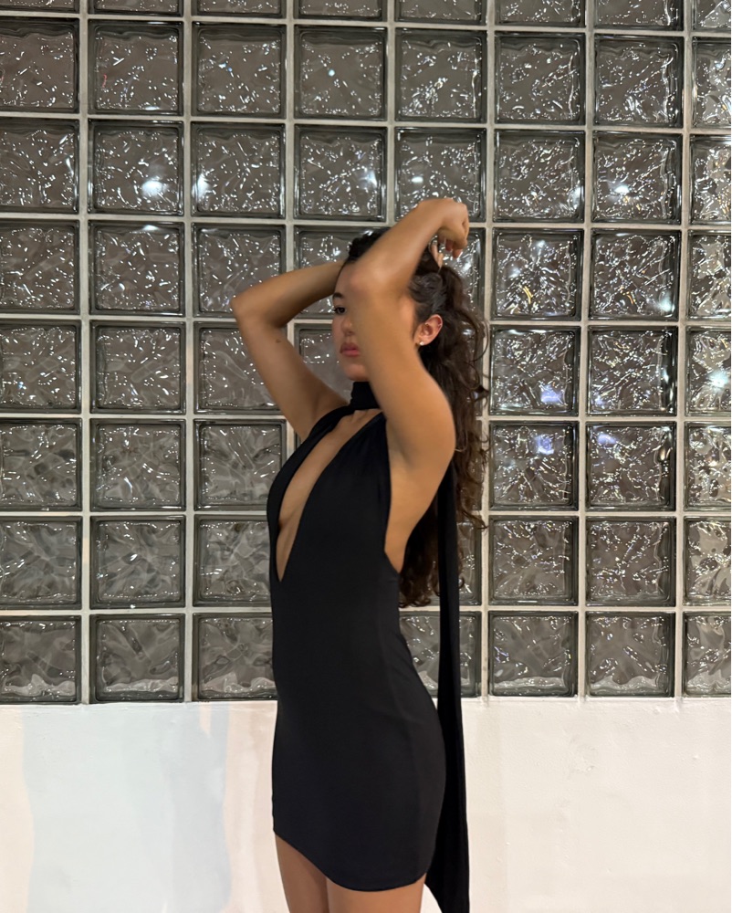 size xs, wrap around scarf, plunge, mini dress