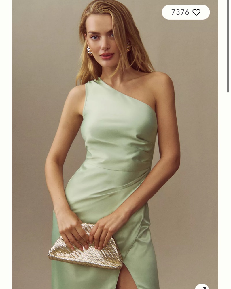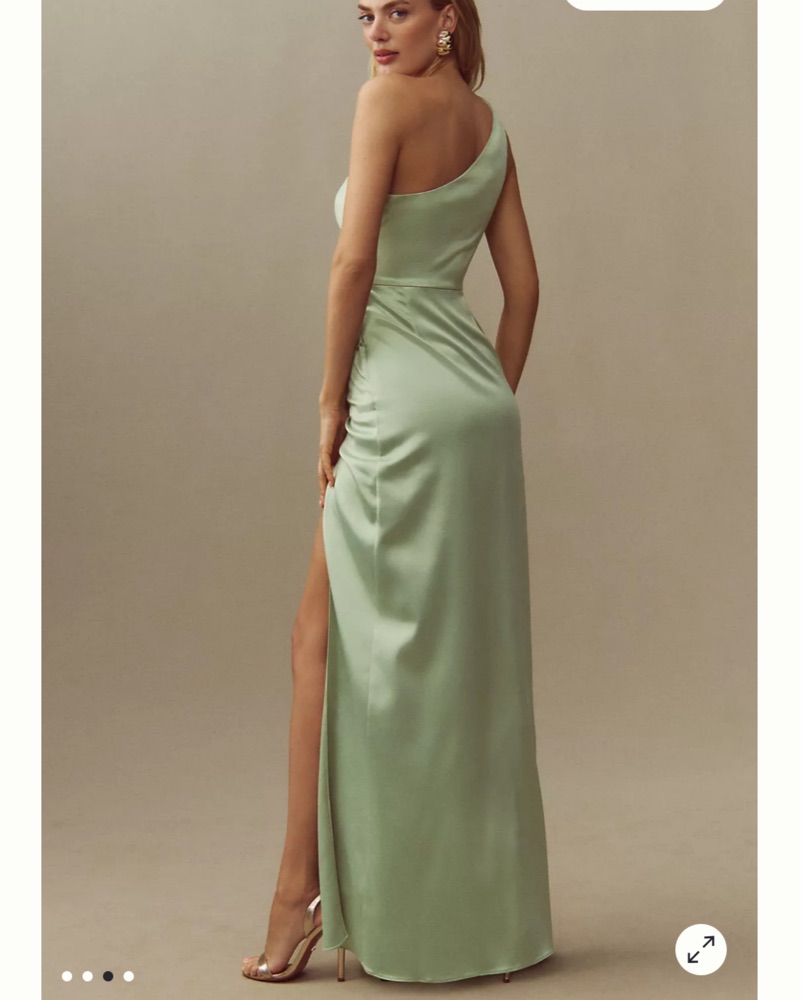 BHLDN Scottie One-Shoulder Side-Slit Stretch Satin Maxi Dress, Sage Green