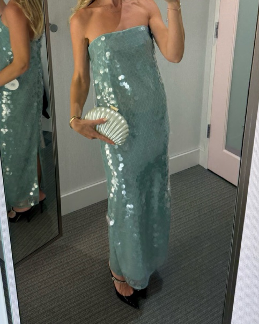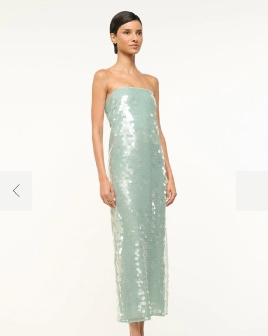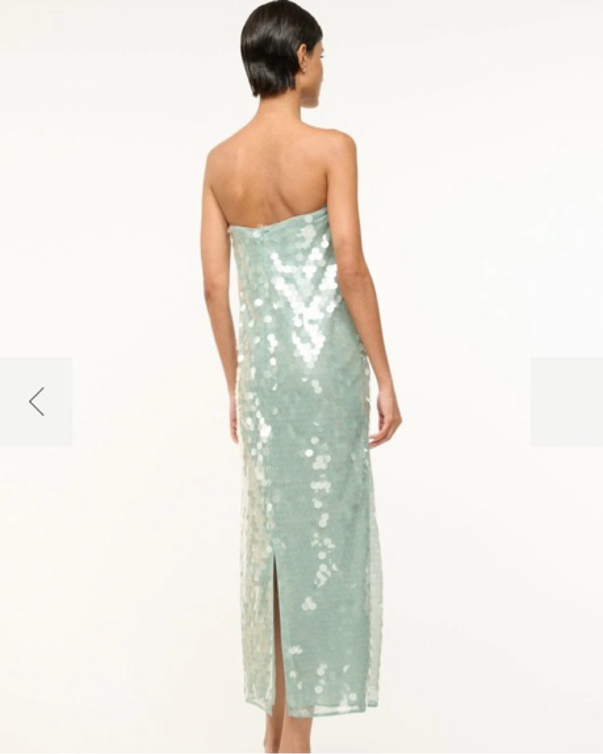 Staud case must dress with internal corset. Our best-selling Casey Dress crafted in shiny sequins features a relaxed silhouette throughout the body, a back slit, and a hidden zipper.