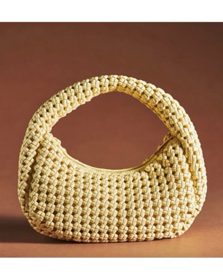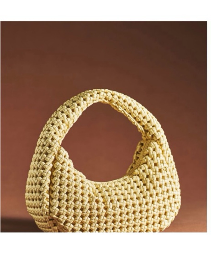 This light yellow stylish woven faux leather bag is the perfect accessory for a summer day. Pair it with a flowy dress or casual outfit for an effortlessly chic look.