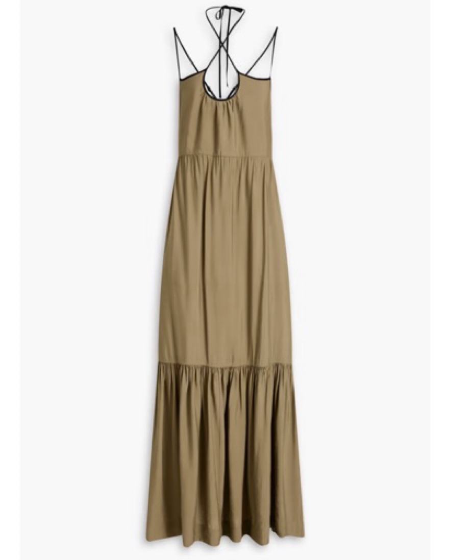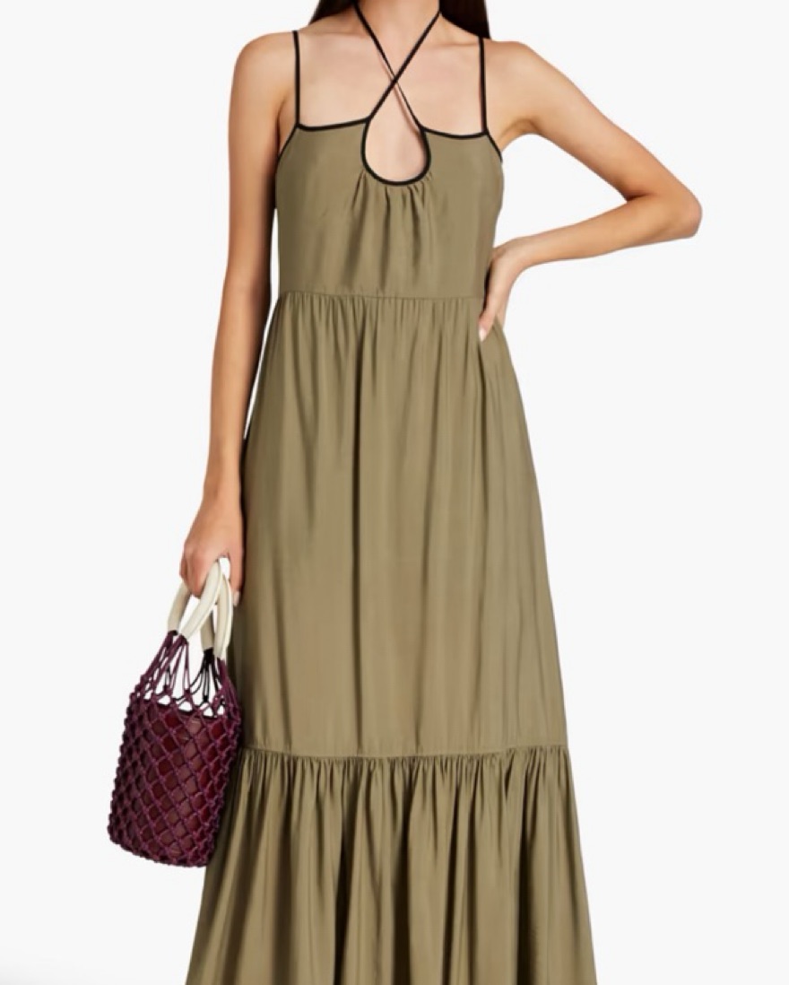 2 tier dress, fits like xxs/xs . I noticed a small wash line under the breast area, not sure what it is, but it’s not really noticeable when you have it on.