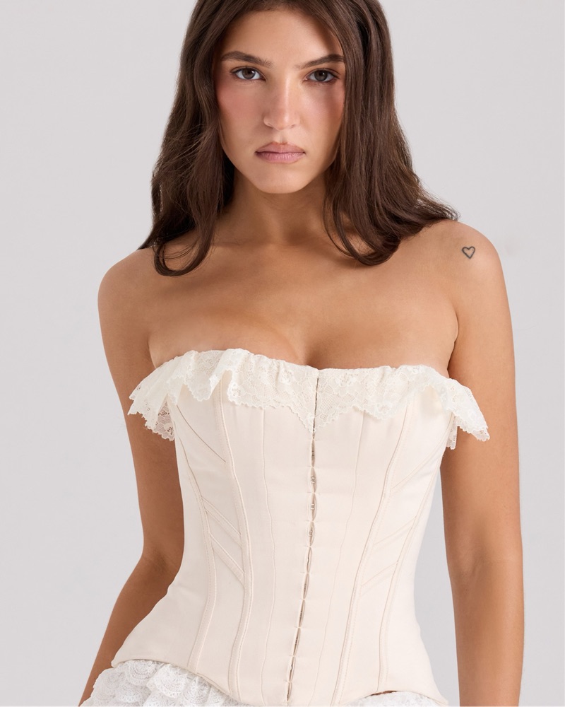 HOUSE OF CB Cream Satin Lace Trim Corset