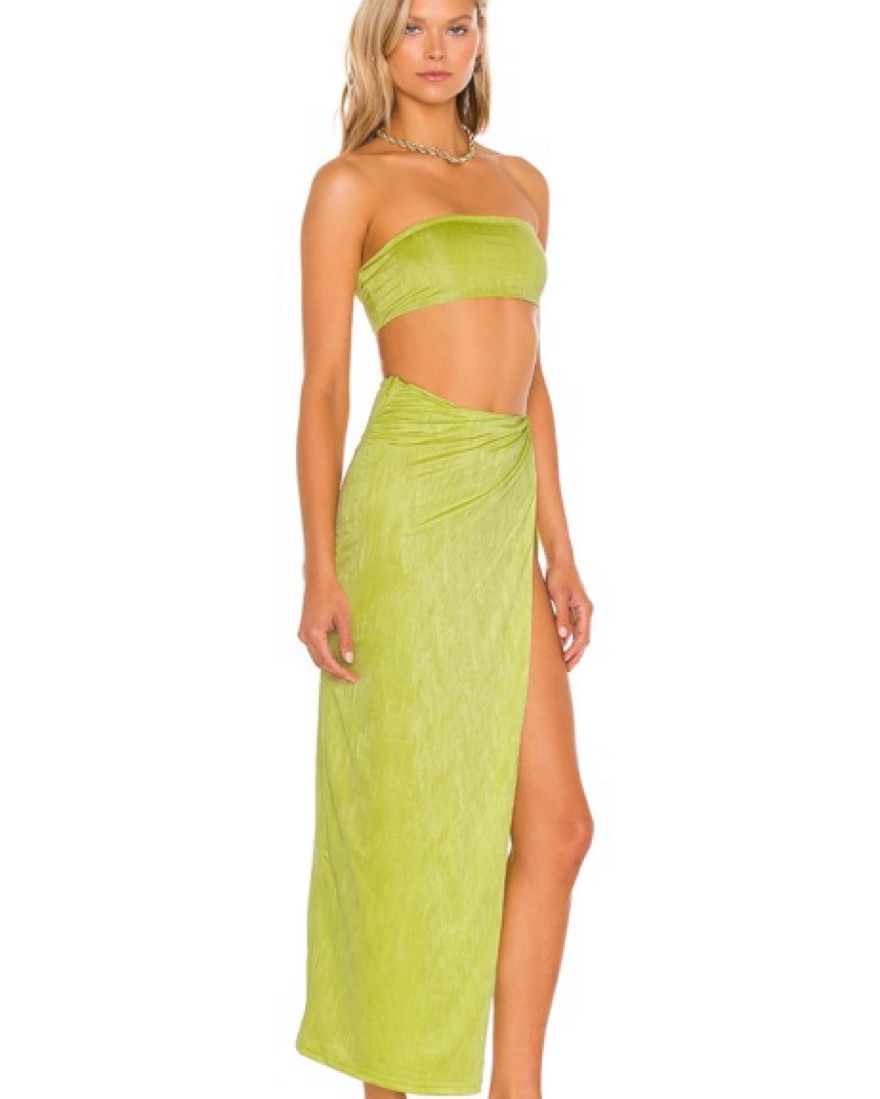 ⭐️KAROLYNA MAXI SKIRT SET⭐️ Two piece citron high slit maxi skirt & bandeau top set