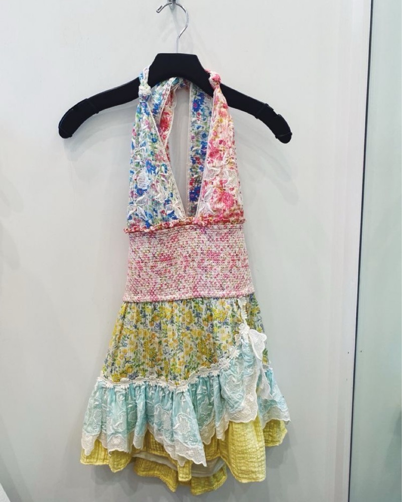 Love shack fancy cambria haltar mini dress. In perfect condition. Ties in back and underbust is very stretchy and adjustable!