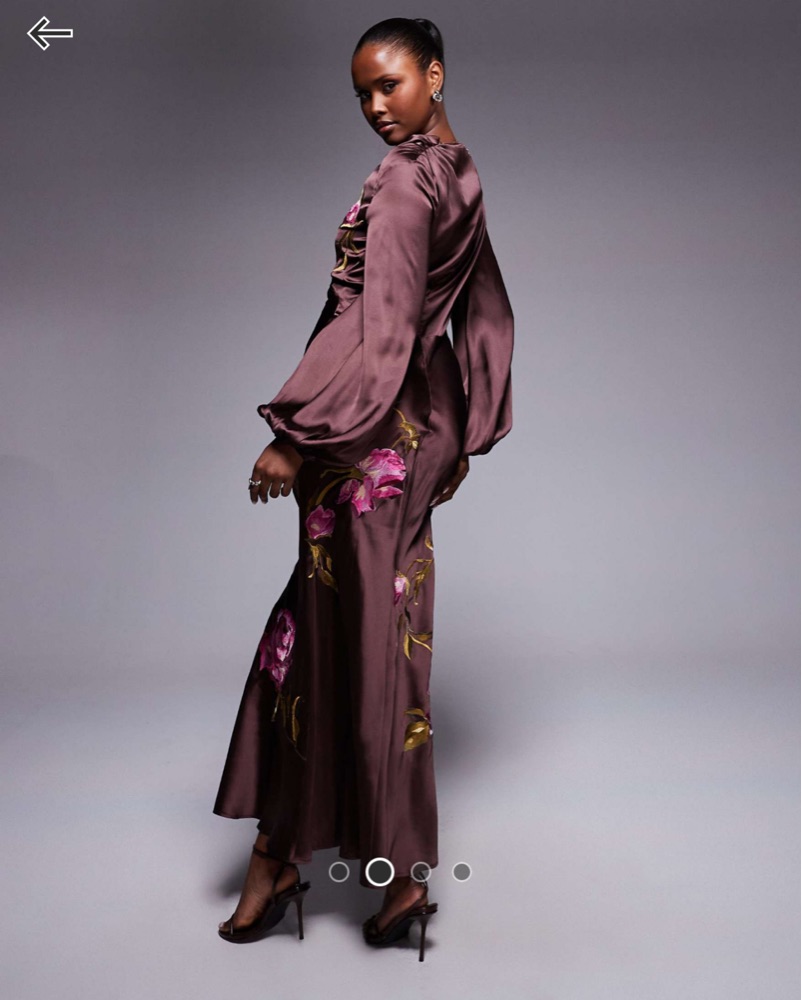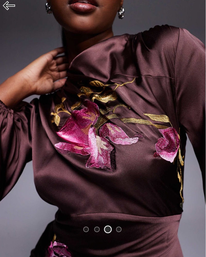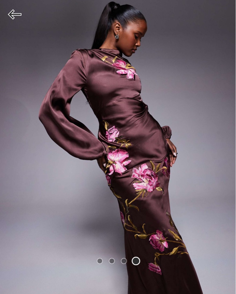 Cowl Neck Floral Ebroidered Maxi Dress by Asos Design - Pickle