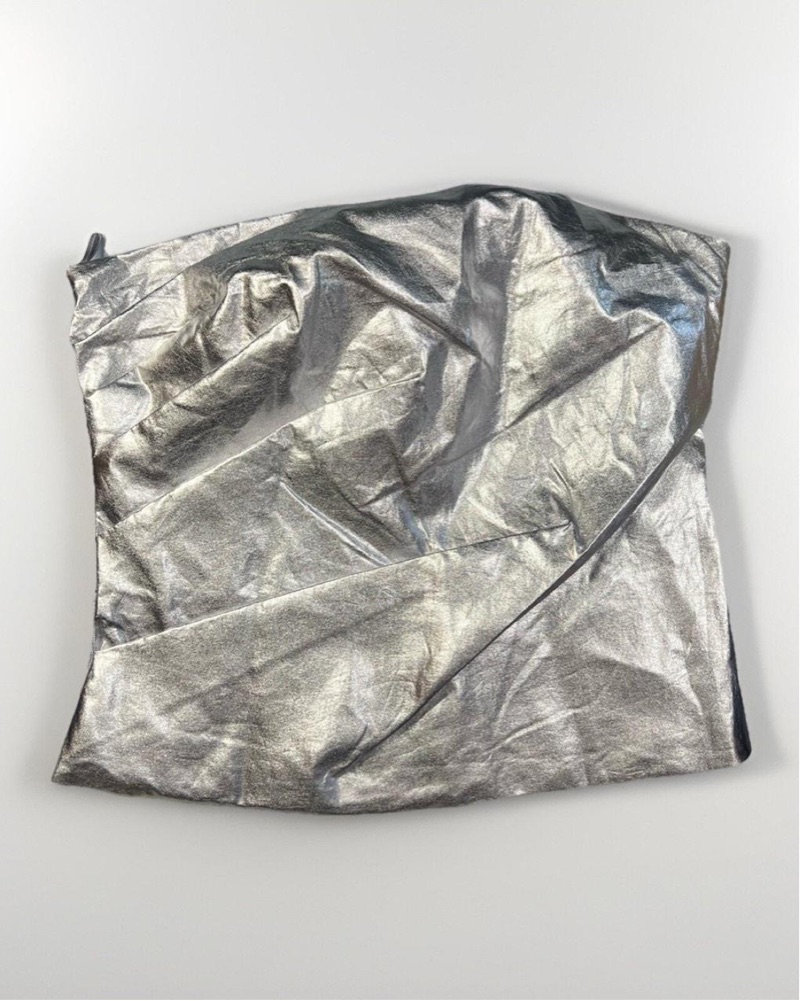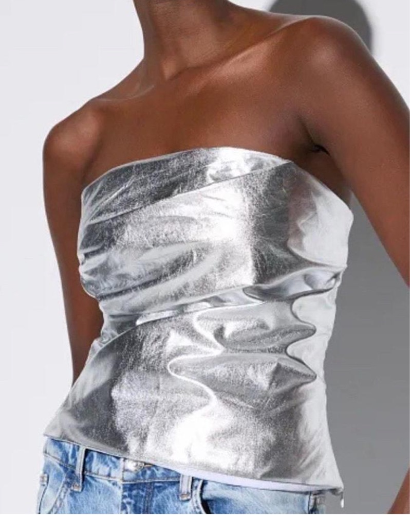Metallic Silver Strapless Crop Top by Zara - Pickle
