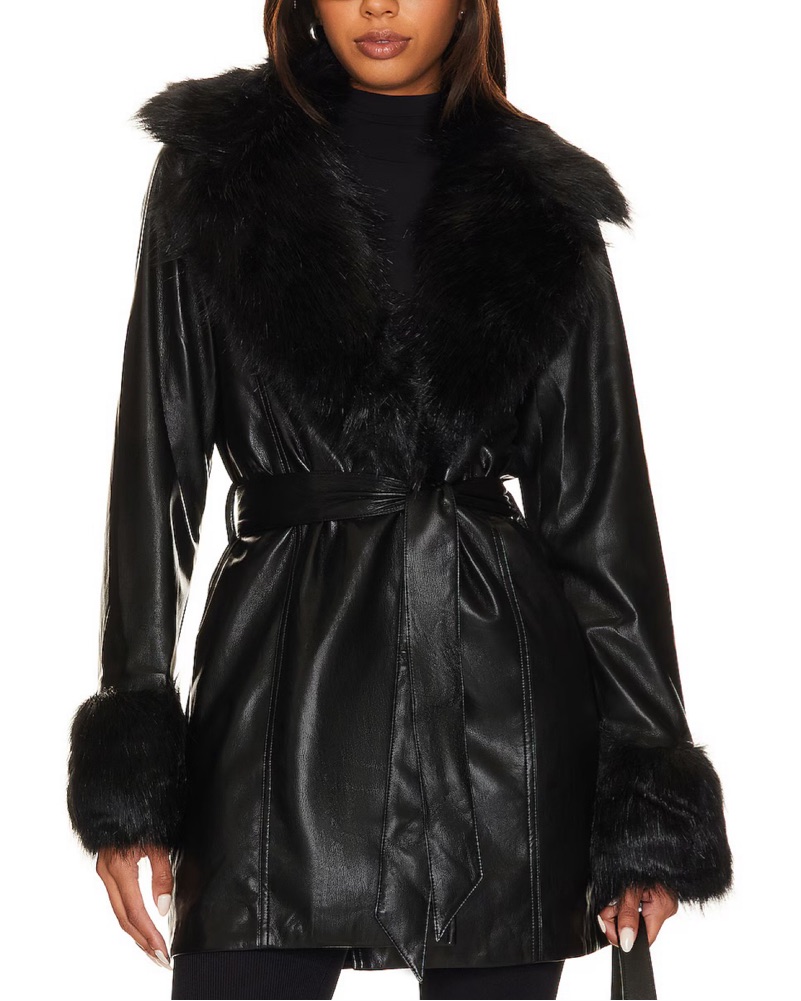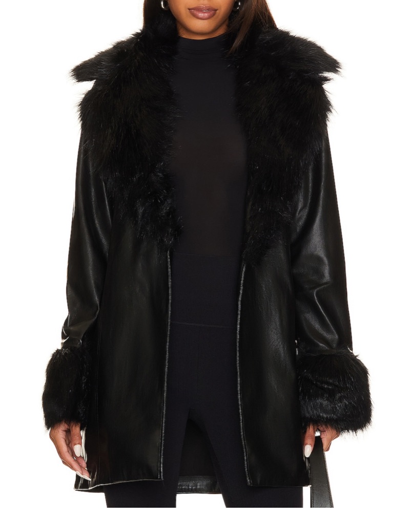 Show Me Your Mumu Penny Lane Coat in black faux leather and faux fur size xs!