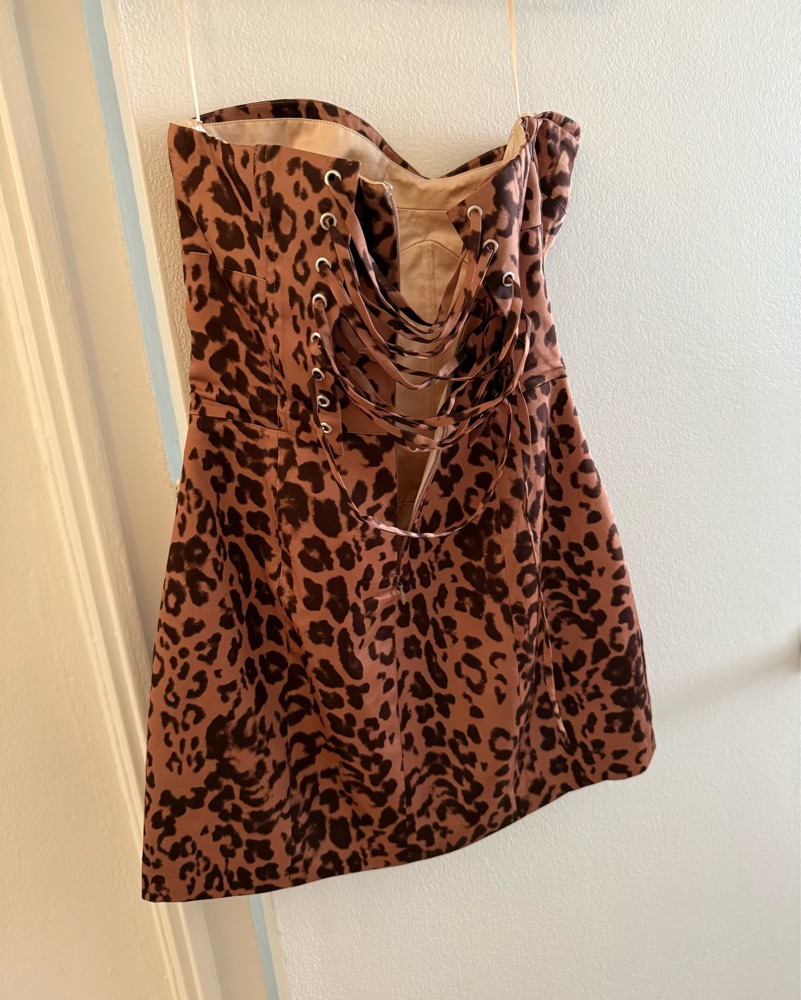 Leopard Pacie Satin Mini Dress Size 4