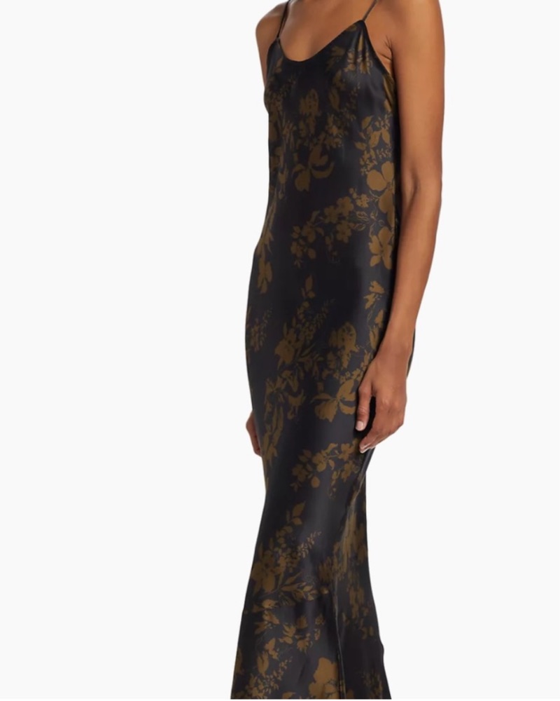 Reformation Parma Silk floral maxi dress in Night Garden pattern.
