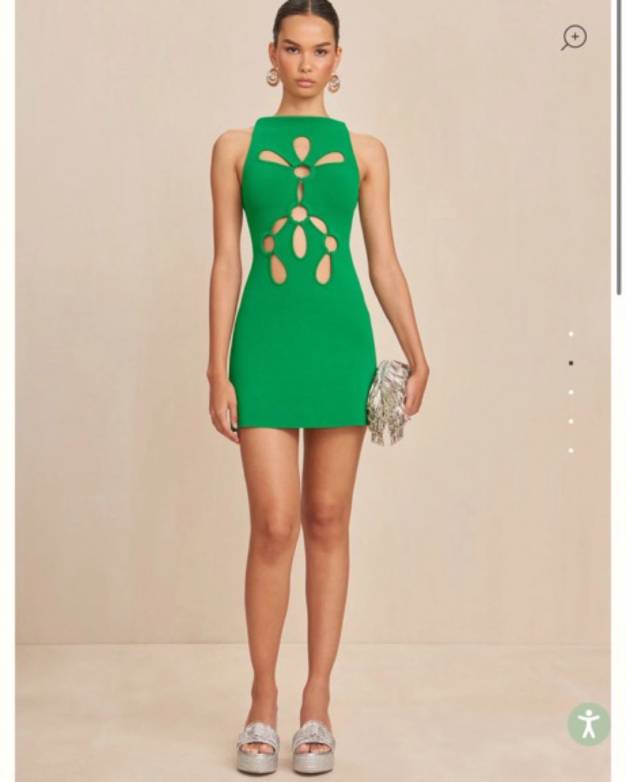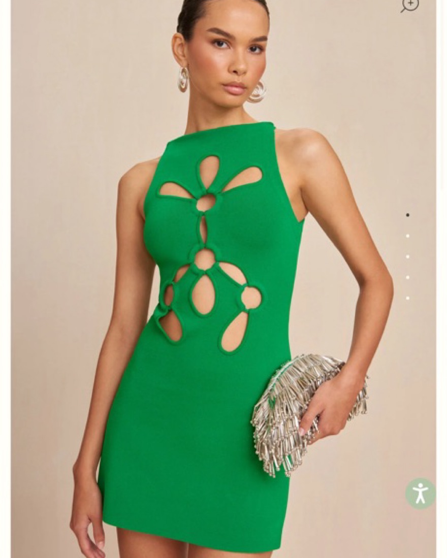 SOLD OUT and no longer sold the most gorgeous green knit dress fits an XS-S. Green knit dress, cut-out dress, bodycon dress, sleeveless mini dress, bold statement dress, green cocktail dress, designer knit dress, , keyhole cut-out dress, euro summer , vacation dress. Price includes dry cleaning! 🧼