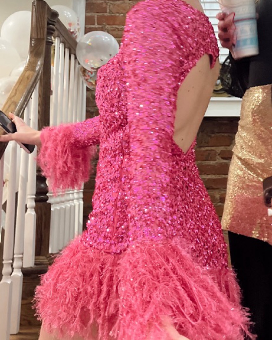 Open back, long sleeve, short dress
