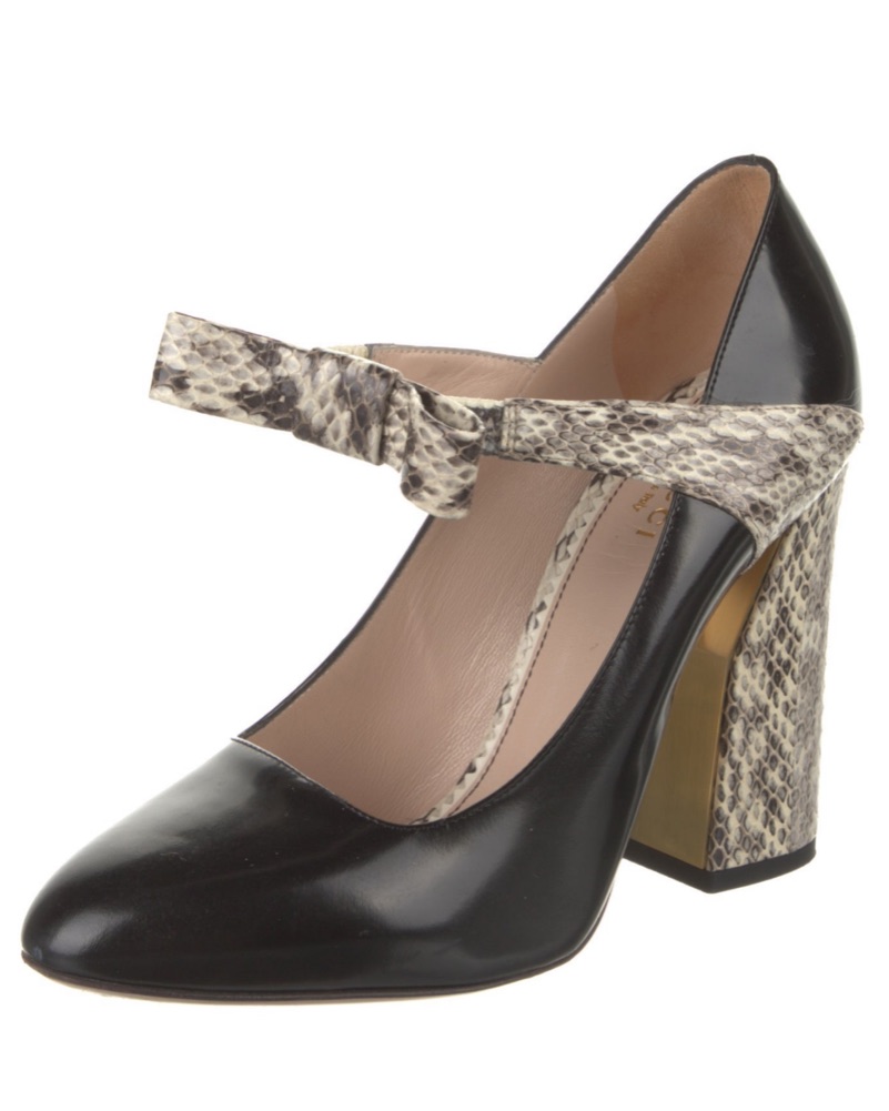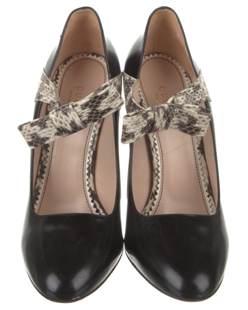 Very unique pair of Gucci snakeskin block heels! I’ve only worn once, otherwise in mint condition. Size 38.5 - slide in and out, bow stays in place. Awesome pair of shoes!!
