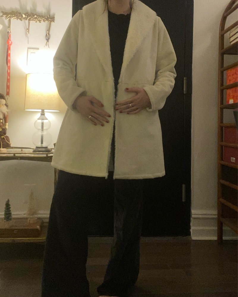 This cozy faux fur coat is the perfect addition to any winter wardrobe. The soft, plush material and oversized silhouette make it ideal for adding a touch of glamour to casual or formal looks. Great for any holiday occasion!