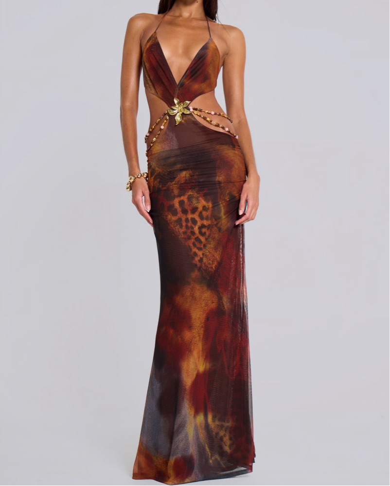 Viral Jaded London Vida Backless Maxi Dress in Whiskey. Beautiful and worn only once, perfect condition. Great for a vacation or resort vibe- it’s a showstopper 💗 please be careful with the hardware and beading. It’s very delicate.