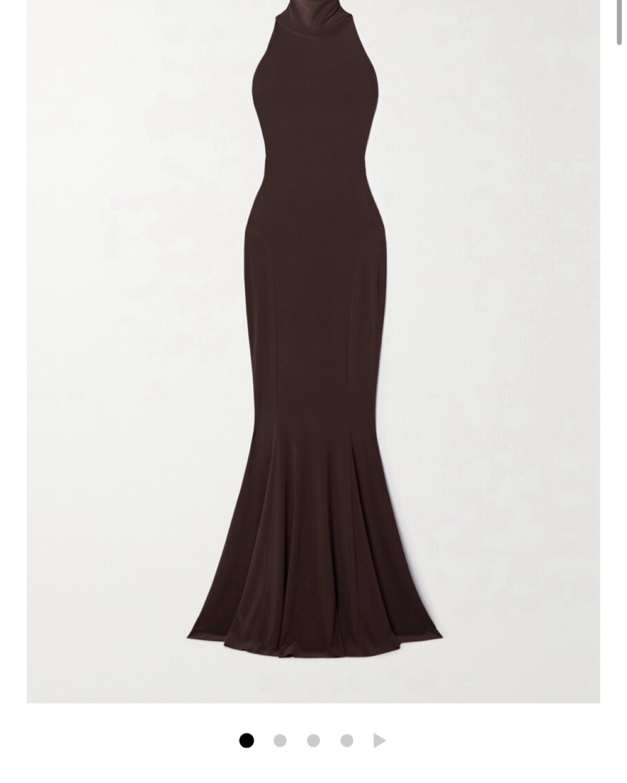 Brown open back halter dress. Worn once, slightly hemmed on bottom. ***Picture was taken in heels but BEFORE dress was hemmed! I am 5’1 and wore ~3 in heels and the dress just skimmed the ground.