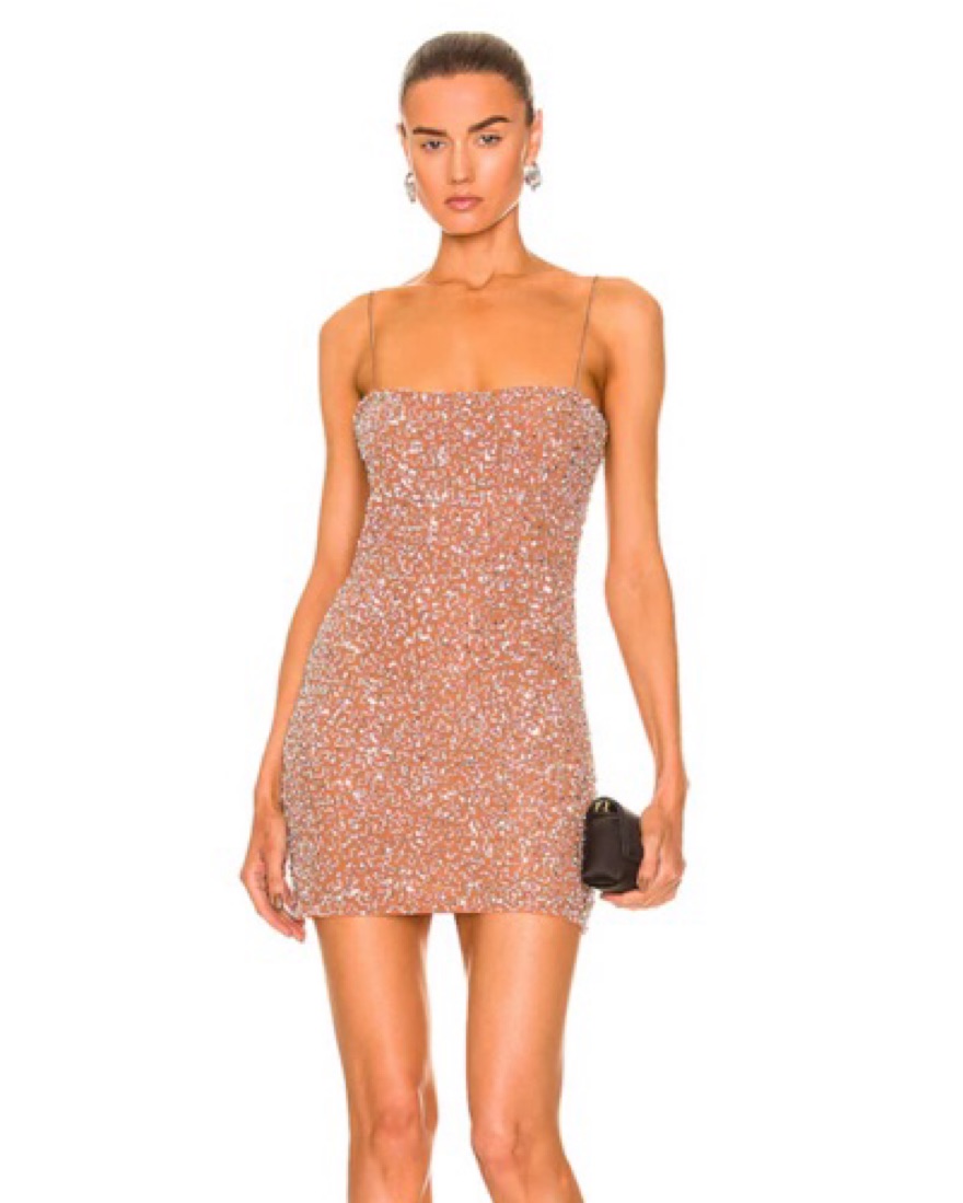 An instant classic, our Dionne Dress was designed to stand the test of time. This streamlined mini tube dress features hand-stitched sequin embroidery and spaghetti straps. The no-slip interior top trim keeps your dress in place while you dance the night away. Shown here in Silver/Nude.