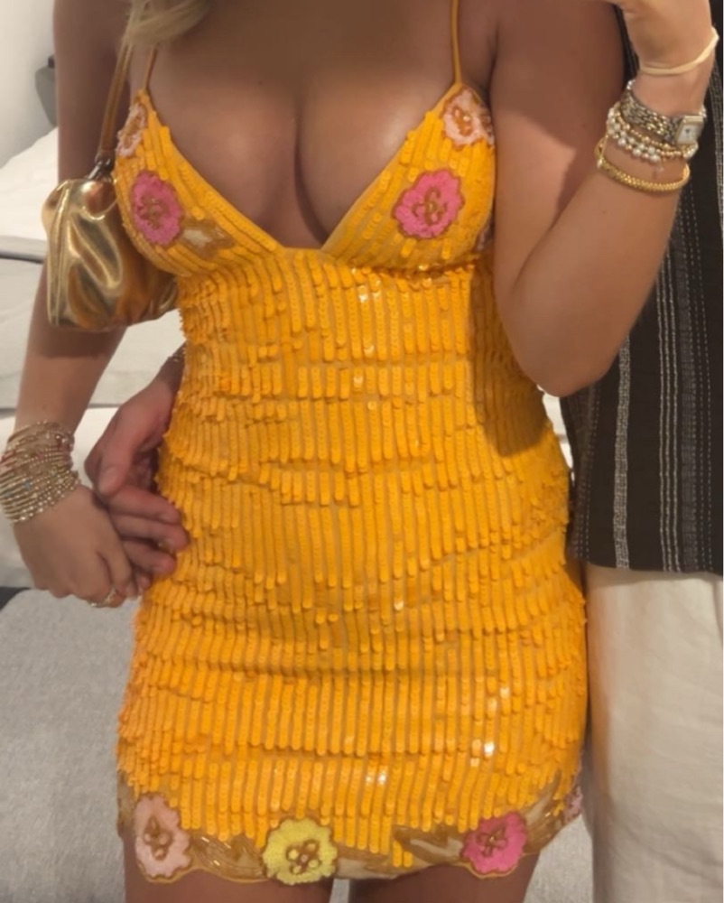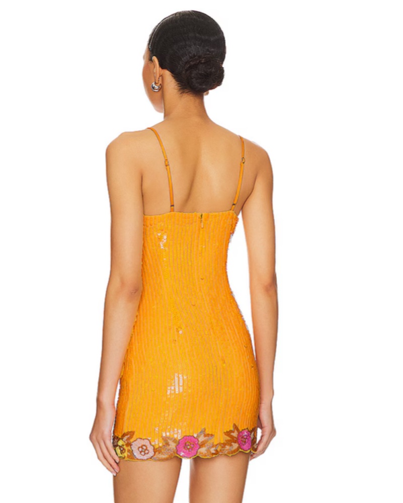 Majorelle Cal Embellished Mini Dress in Sherbert Orange. Worn once. Sold out