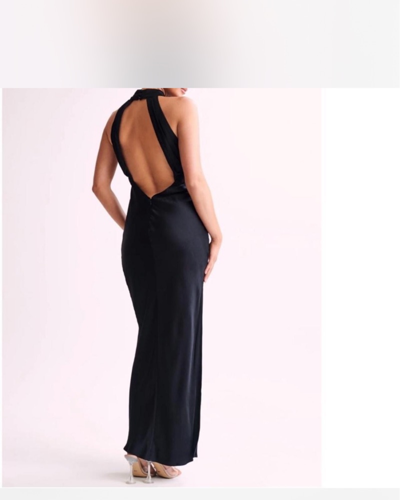 Black satin maxi dress. Worn once for engagement. Size small!