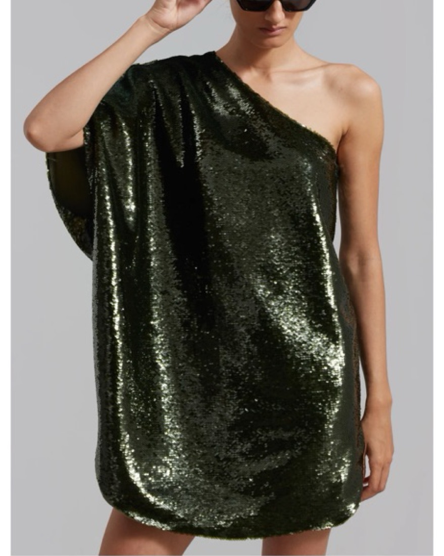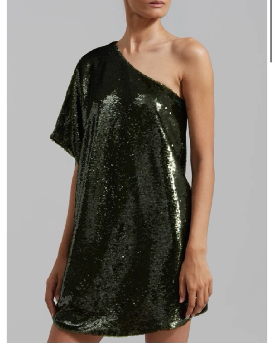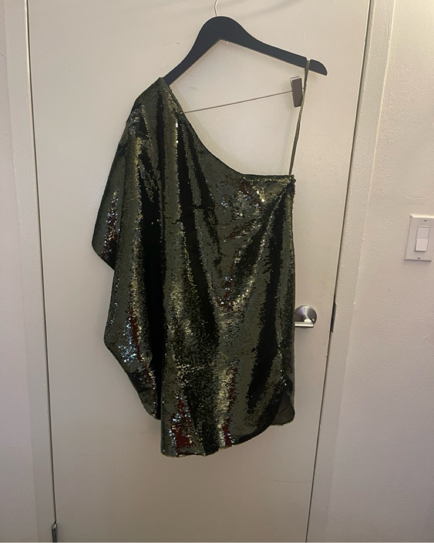 One shoulder sequin Gloria dress in dark green, size large, never worn
