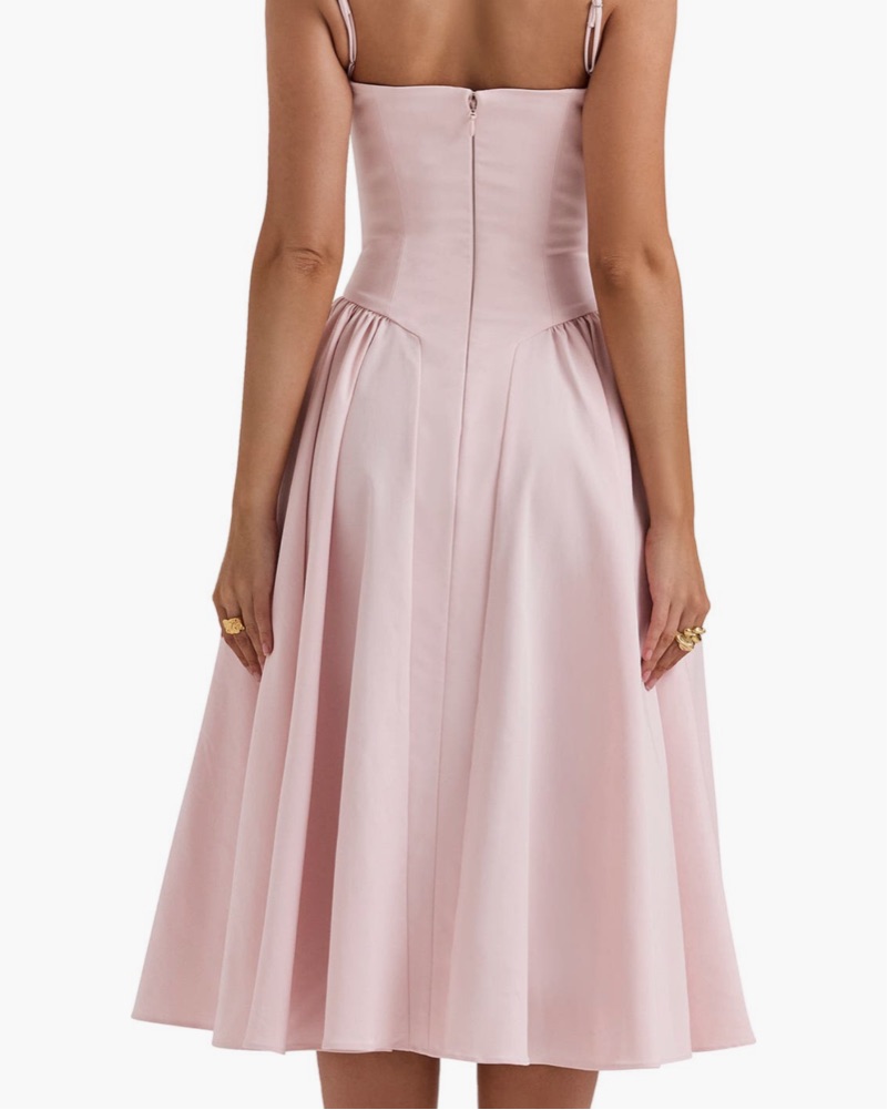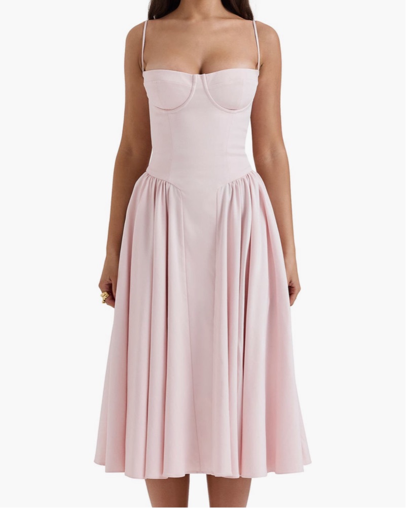 House of CB Samaria Corset Fit & Flare Midi Dress in Pink Salt