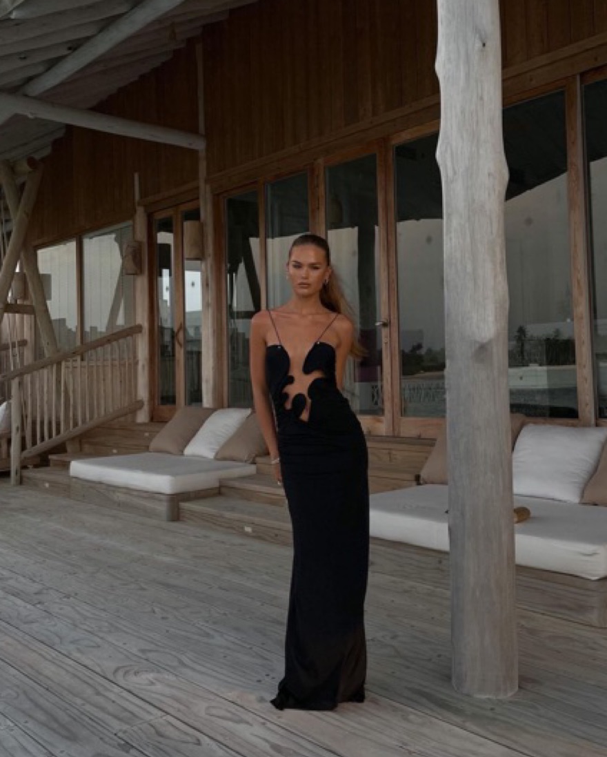 AVAILABLE - Beautiful black gown with wire detail at the front, from Christopher Esber mostly sold out. Size Australian 8, fits XS-S (stretchy)