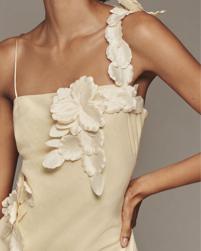 Anthropologie Hutch 3D Floral Appliqué Linen Blend Dress in butter yellow!