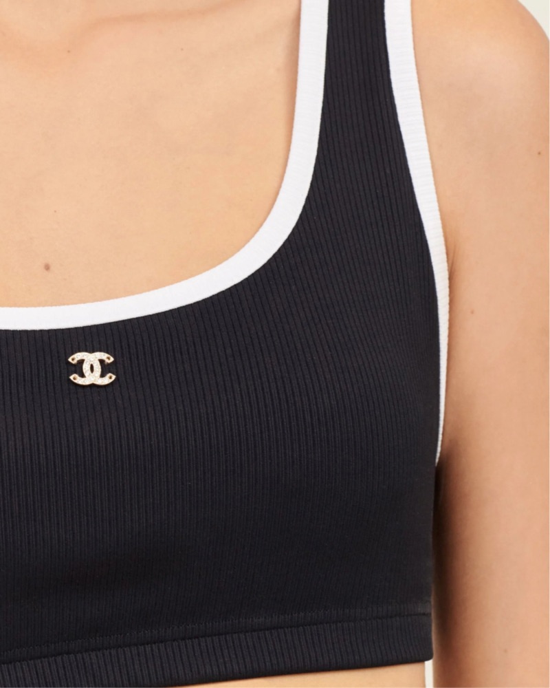 Chanel Bralette Top Bikini Cc Black iconic viral top its being sold for 5000 in vestiaire collective size medium fits small