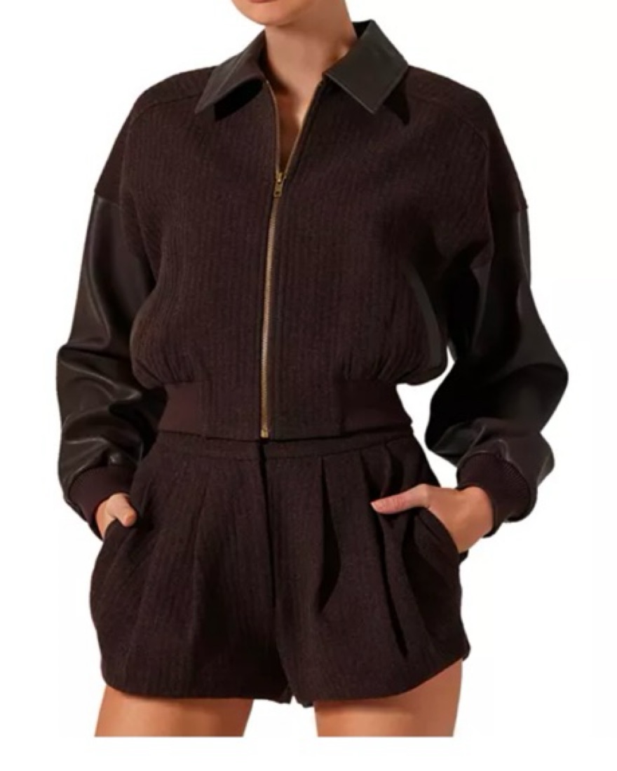 Moto style chocolate brown knit and leather jacket