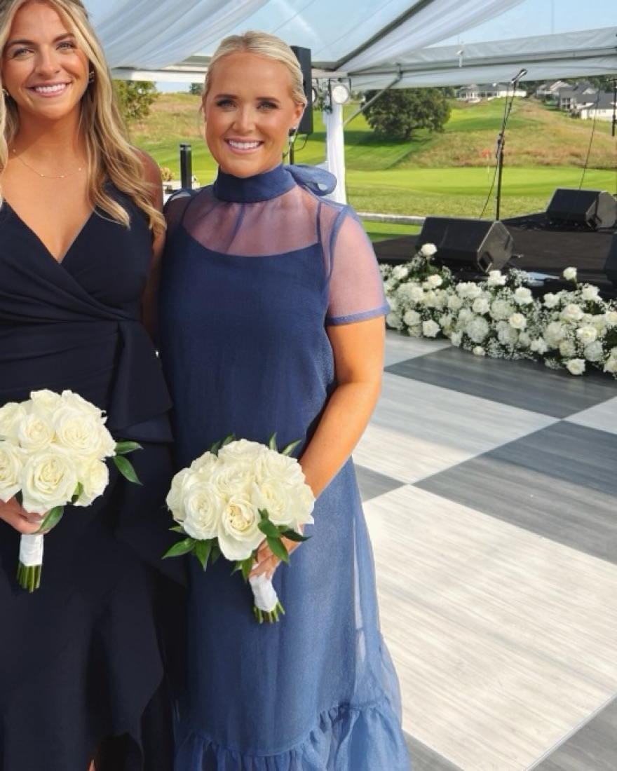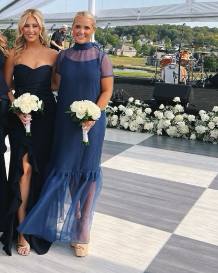 Worn once for a wedding! Originally a Size M since the sleeve’s are a little tight, but had the dress altered to fit like a small and to remove some of the excess material.