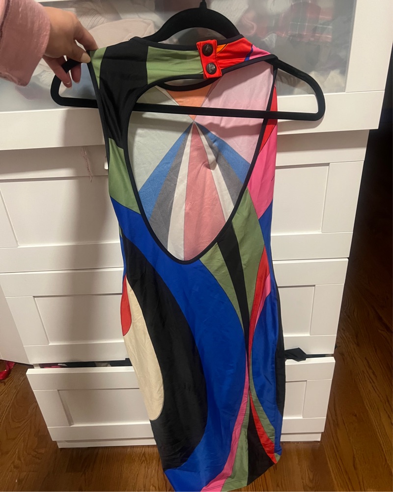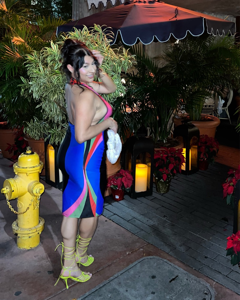 This dress is perfect for a night out or special event. The bold color blocking and strappy details create a striking silhouette that is sure to turn heads. The backless feature is extremely sexy but also classy. No need to iron , wrinkles go away once you put the dress on. I’m an 8/10,very stretchy