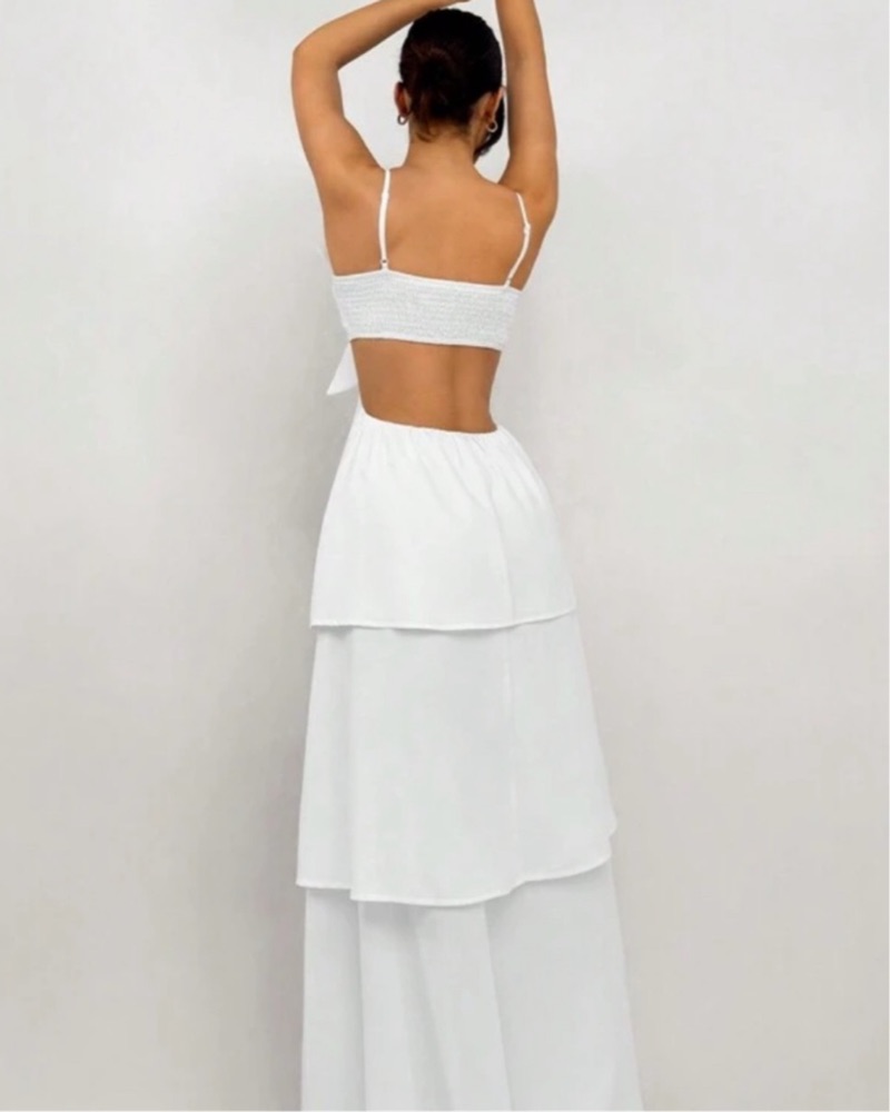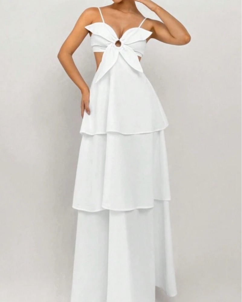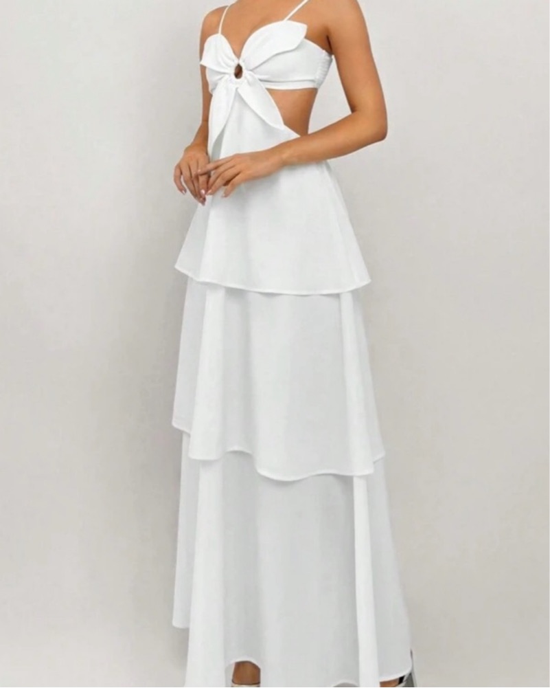 Farm Rio White Flower Tiered Maxi Dress