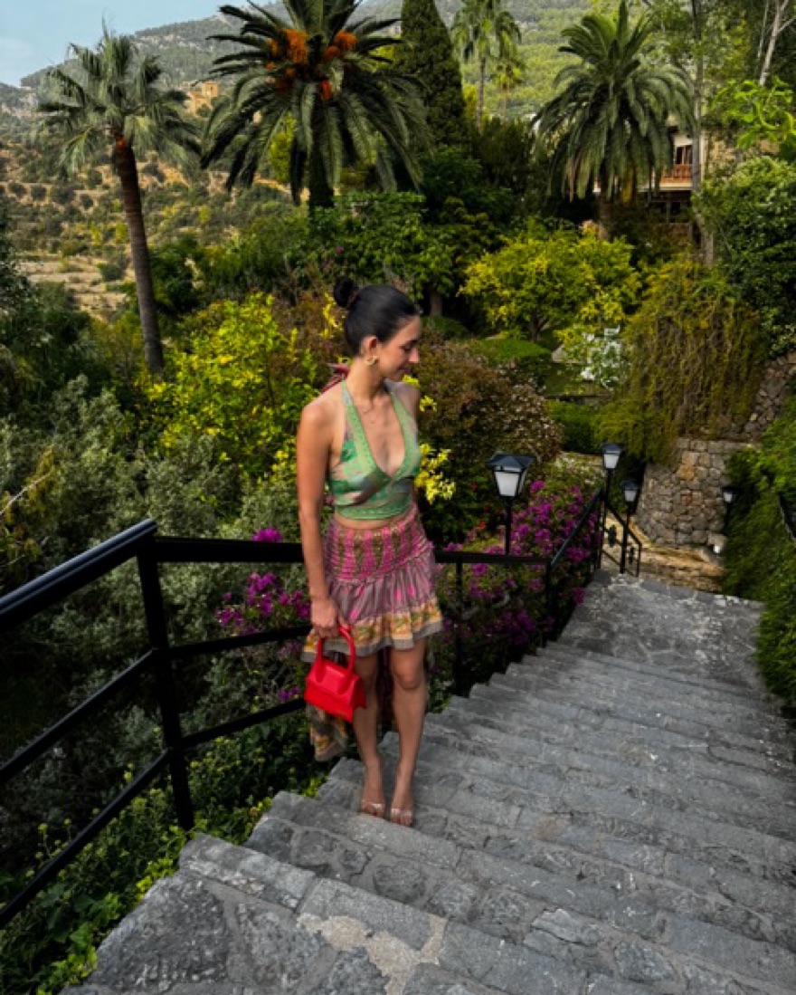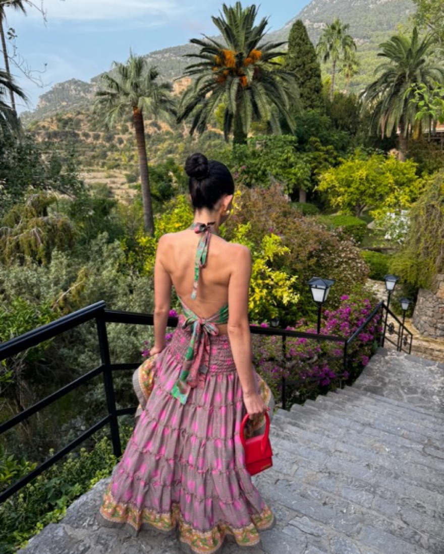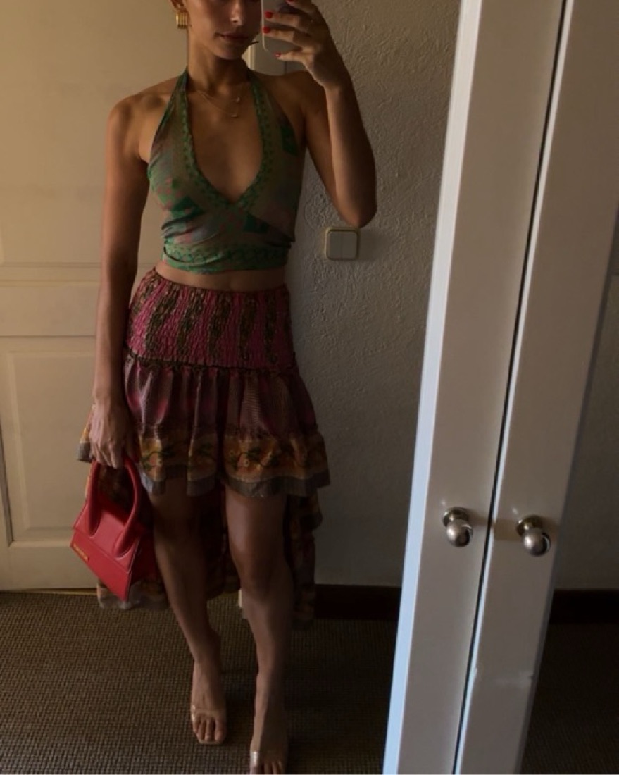Bought in spain, silk set, high low smocked skirt and silk halter top. Adjustable top and stretchy skirt. Shown on 5’5. Fits like xs/s.
