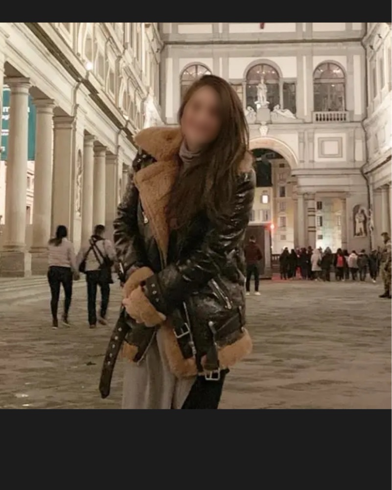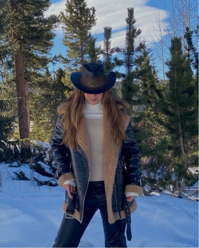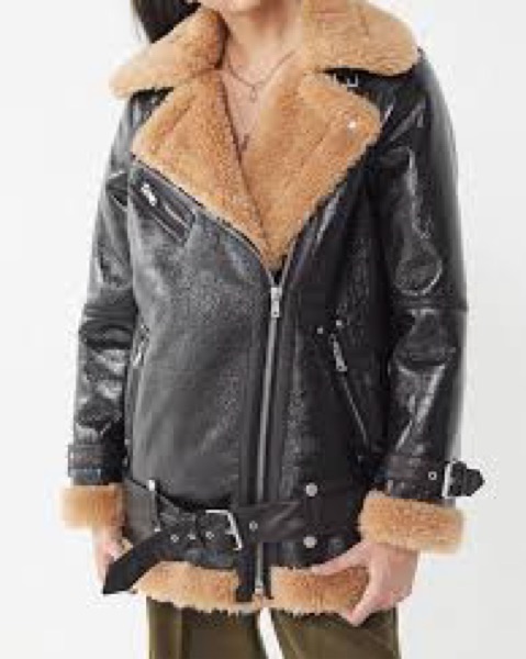 Dark Brown leather (100% Polyurethane). Jacket. Long sleeves with faux fur cuff. V-neckline with faux fur collar. Front zipper closure. Side pockets with zipper closures.