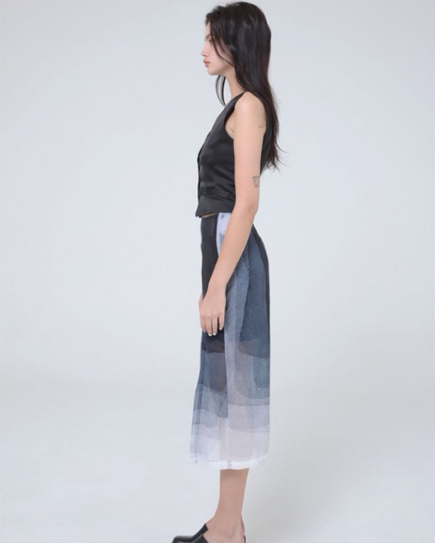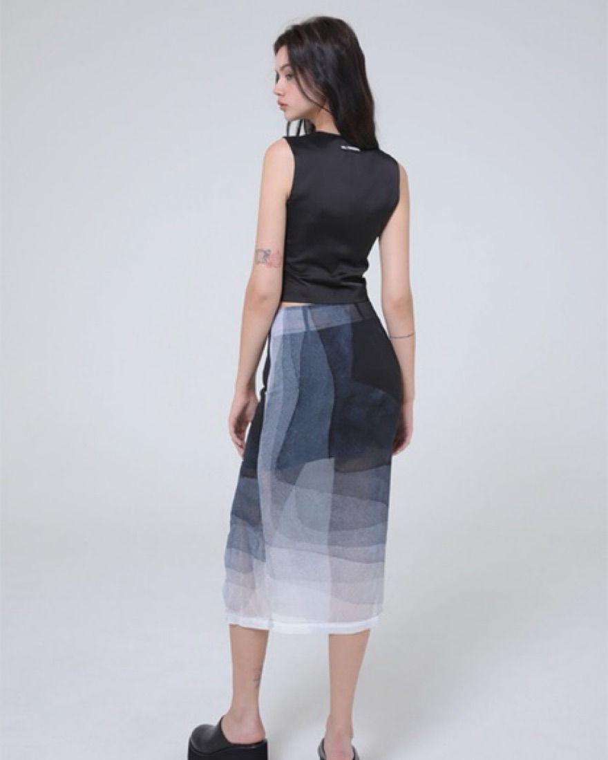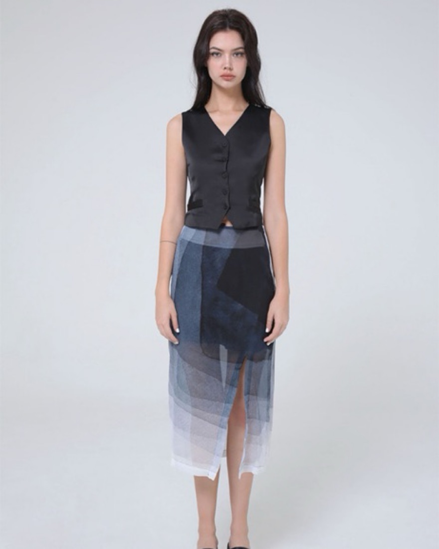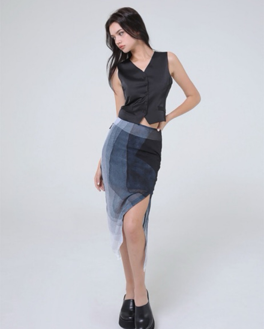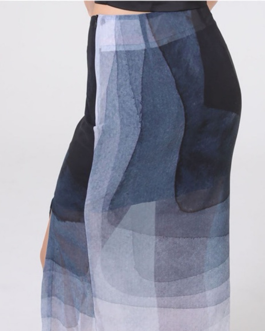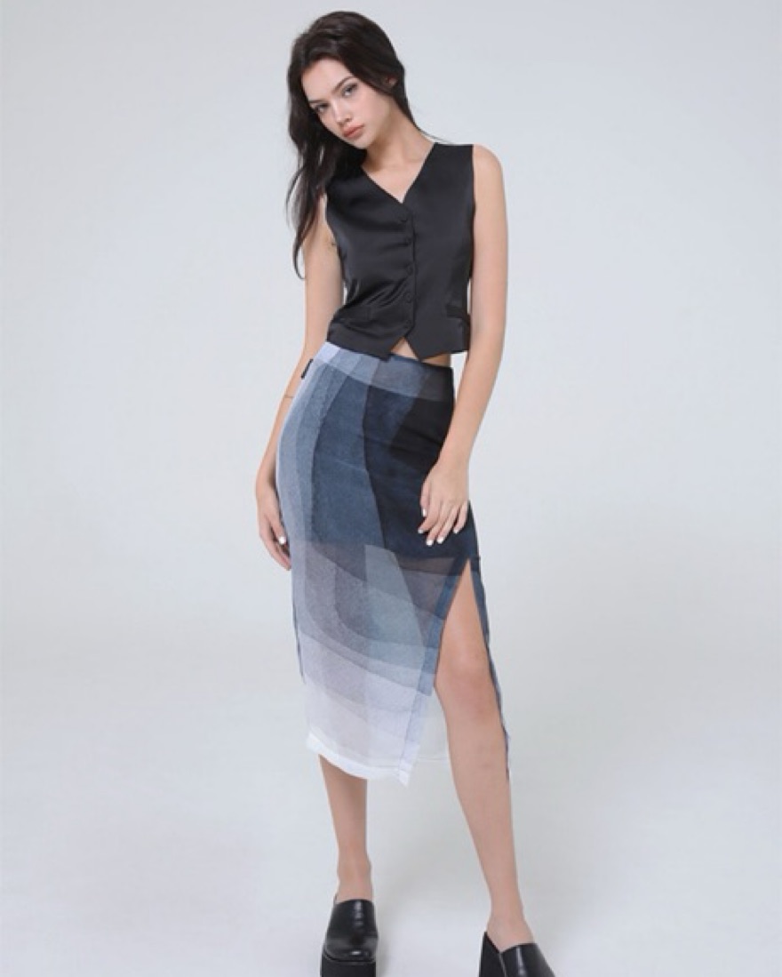 White Black & Blue Mesh Slit Skirt by UGLYSHADOW - Pickle