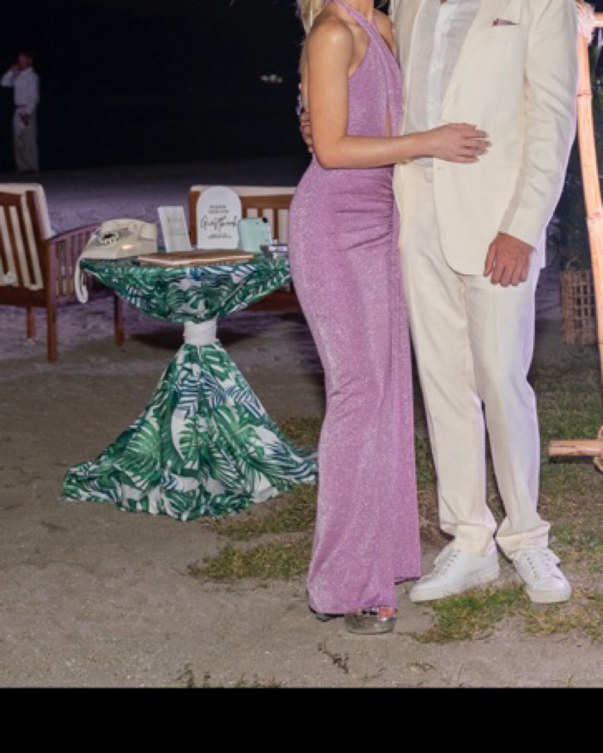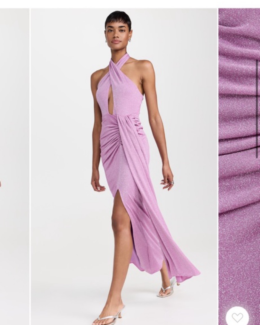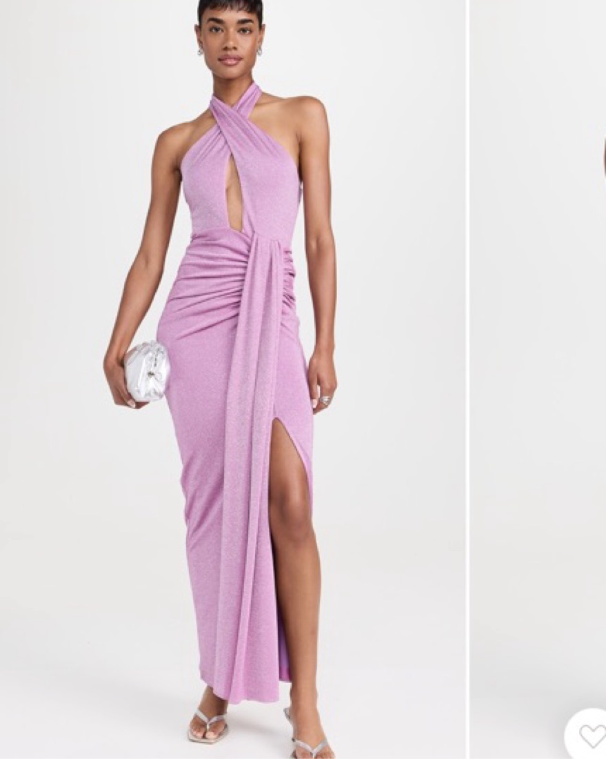 This chic halter-style lavender maxi dress is perfect for a formal event or special occasion. Price includes dry cleaning. Very comfortable!